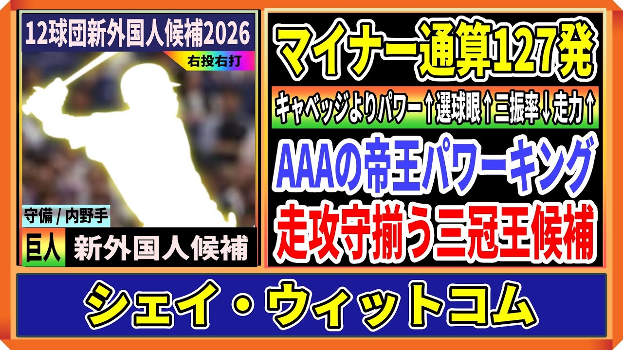 【巨人新外国人候補2026】シェイ・ウイットコム内野手!マイナー通算127発の長距離砲!!総合力は今季マイナーNo.1か【12球団新外国人候補】