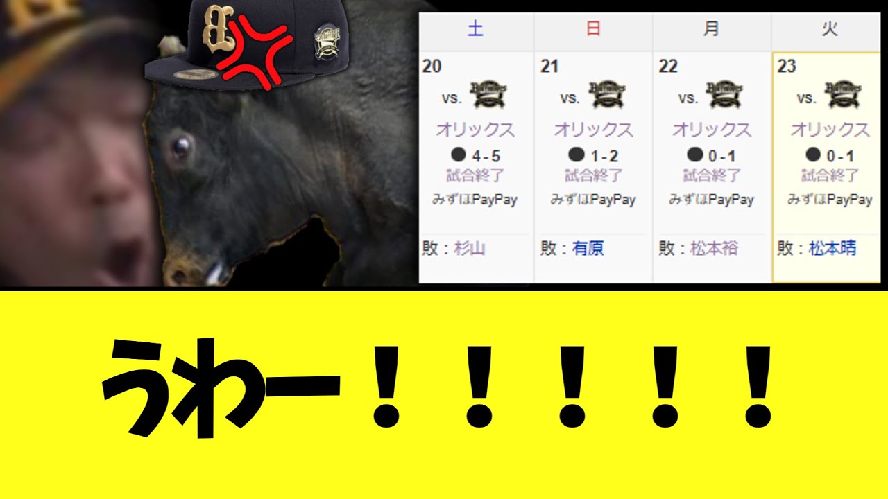 【SBフォンブチギレ】ソフトバンク オリックスに4タテされるとかいう誰も予想してなかった事態にwwww