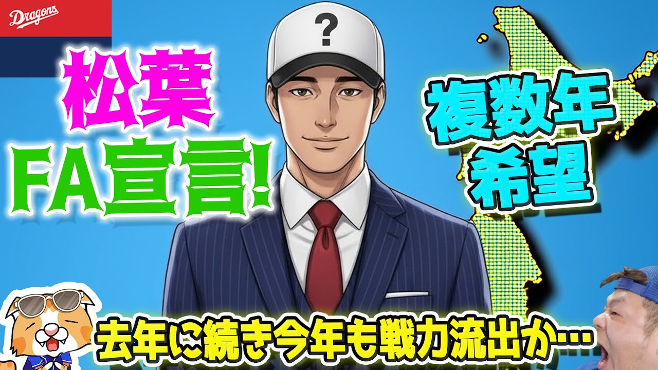 終りのや。これは俺たからのできてか?大丈夫かな?最近怪しいんでね。 [音楽] できてんのかな?できてるってことでいいかな? 大丈夫であれ?大丈夫かな?大丈夫ということに信じとこう。はい、こんばんは。こんにちは。 [音楽] [音楽] いやあ、テレビ漫画野球大会ってこれ 今週号かな?今週一級さん侍ジャイアンツ新巨人の星アパッチ野球 頑張れ。レッドビッキーズ一発君。野球の歌。 これちょっと最新最信号かな?これ。こんばんは。うん。ちょっと飾っときます。飾っときます。なんだかよくわかんない。はい。 [音楽] [音楽] をめるのは俺の仕事じゃないんよてアロマカアロマアロマカおるコーヒー買ってきたんですけどね。あんま普段美島飲まないんです。ブラックばっか。ブラックっていうかブラッってミルクが入ってないってことだよね。あのさ、砂糖砂糖なしミルクなしをいつも飲んでんですけど。これね初めて買ったんですけど美いしい。美いしい。 美いしかった。え、もうすぐにこんな飲んじゃいけないんだろうけど、 1 日になんか何ちょっとでなくなっちゃった。また買ってこよ。はい、こんばんは。そうですね、恐れていたというか、予定通りとも考えられるし、個人的には。 だから松葉さんがね、あの、FAの話出た 時から初日が1番なんかおって思ったん ですけどね。あ、これ残留かなって思った のは初日が1番濃度が高くてその後その後 こうもう10日ぐらいは経ってる。最初の ニュース出てからなんかね、だんだんと こう遠くなってってる感じはしてたんです けど、ま、案の上というか 今日今日提出したみたいですね。今日書類 提出ということで、 ま、 もちろんまだドラゴンズとの契約はすると いうことですがね。その話し合いは 話し合いはするということですが どうでしょう?ピッチャーですからね。 野手だったらさ、やっぱちょっと話がね、 違うけどピッチャーって何人いても困ん ないからさ。しかもCランクだし値段も だって5000、今期5000万だからさ 、ま、ぶっちゃけ 戦力として考えられる ミニマムだよね。もはやあの先発投手だし だったらまたちょっと話が違うと思うんだ けど先発だよ。 ああ、ドラゴンズが後は頑張るしかないっ て感じになったな、これ。思ったんだよね 。 なんかなんかなんかてか去年もこんな感じだったじゃん。 去年も結局 ね、しんちゃんがいなくなって、ライがなくなって、福キがいなくなってね、あって感じだったすけど、ま、引退とかタジーの引退とかもあったけど、なんかこうだんだんとだんだんとな、なんつうのかなんつうんでしょうね。 ちょっと目に見える弱体化が起こっており ますが、皆様はいかがお過ごしでしょうか ?ま、金丸君が今年入ったりね。だから なんつうのか来年も1人出てくれなんだ けどな。もし松葉さんがどっか他のチーム 行って 、ま、セリーグで行かれて活躍された日に はトントンじゃないんだけどね。あの、 マイナス1プラス他のチームプラ1してる から22の絶対位置の差が出ちゃうんで セリーグ行って活躍されるとちょっとさ、 マイナス2なんだけどリーグ行った場合は マイナス1で済むからさ、 そん時は なんつうかね、あの 誰か1人出てくれればまだ穴が埋まる。 まだ埋まるけどセリーグ行かれると ちょっともう結局昔の巨人だよね。相手を 弱体化させることがね、チーム強くすると いう戦略ってあるんでね。 うん。高等テクニックですけど。 ま、昔はさらに言うとバッターにぶつける とかまであったからとんでもない時代でし たけどね。 ま、そんだけこう成り振り構わず真剣だったとも言えるけど、ちょっと物騒だったよ。昔はね。今考えるとやべえ時代でした。未だにそのノり持ってる人いるからな。困ったもんなんだよな、野球会も。はい、それでは、それでは行ってみましょうかね。行きましょう。せーの。えい。ちょっと顔が似てないな。 うん。ちょっと顔が似て阪神にいそうな顔してるな。なんか阪神行かれたらね、困るけど。うん。松葉さんが FA 宣言しましたね。ま、まだ工事は出てないんですよ。 当事はね、なんか調べたら 今日からFAの要は日本シリーズが終わっ て 平日の平日のっていうかね、土日祝日は カウントせずに平日の7日間がFA受付 期間で、 だから来週の真ん中ぐらいまでがFA受付 期間なんですよね。で、それが終わった 翌日に工事になるらしいんで。で、工事に なったら早ければその日に決着ですね。 らしいです。 早ければその日に決着だからもしかすると 1番早くて来週のどれぐらい木曜日ぐらい 松葉さんが違うチームの選手になってる 可能性はあるのだ。うう。松葉さんだけで 住むかな。 複数年が松葉さんの希望らしいんでね。もう金額よりもやっぱり 40歳、今35歳、40歳を目度にね、 1 年でも長くやりたいっていうのが希望みたいなんでチャレンジしたいという。うん。海外 FA 権持ってんですけど、海外ではなさそうですね。海外ではなさそう。うん。 海外FA県は持ってるんですけ