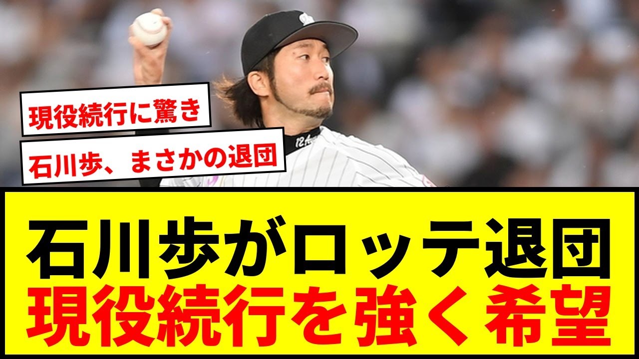 [音楽] 石川がロッテ対談現役続報を強く希望ロッテは [音楽] 7日石川投手 37 学球団の高知人打をこじし対談数と発表しました。石川投手は現役続行を目指す以降で通算 [音楽] 79 勝を上げた厚労者として知られています。球団は引退試合の実施など花道を飾る場を用意しましたが本人の強い希望により対談が決定石川投手はこれからもマウンドで投げていきたいとコメントを発表しました。 [音楽] 2 軍でもほとんどりられなかったし、引退打はしてなきゃおかしいと思ってたがやっぱりだったな。 トライアウトを受けるのか、それとも地域リーグの球団に行くのかてっきり引退するのかな。ドラフトで巨人と競合して獲得した主人をもっとやってくれると思ったけど怪我に泣かされた。 [音楽] 本人からすれば完全名称してないって思いが強いんだろうけど引退韓国は妥当ではある。 石川ムはなんで引退でもなく戦力外にも上がらないのかと思ってたら引退じしてたんだね。 昨年はさすがの投球室で星を上げたが、いつ投げられるか分からない投手では決算ない。所だから来年引退試合をしてあげるための支配が眼流かと思ってた。 [音楽] このニュースを見て少しほっとした。これだけ低明したんだからフロントはチームを殺信しなきゃ。 現役続行って石川の最後の意地なのかな?拾ってくれる球団あればいいけど頑張ってほしいですね。 石川の性格的にスパッとやめそうな感じしてましたが現役続行ですか?でばロッテで引退して [音楽] 高知色を用意しての大乱でそれならファンも納得するのかな?連齢的にも遺跡先を探すのは大変。 故障は復活の出体えを掴んだ作だっただけに現立続行の気持ちが強そう。これまでありがとう。 エスのか。それか [音楽]