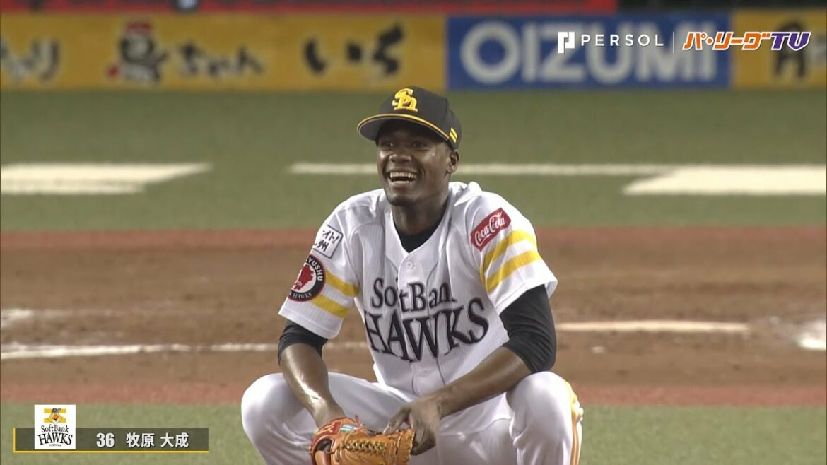 一打同点のピンチ。チームを救ったのは福岡ソフトバンクのセカンド・牧原大成だった。内川聖一も両手を挙げてガッツポーズ、モイネロも座り込んで「よかった~」