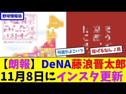 【朗報】DeNA藤浪晋太郎、11月8日にインスタ更新【ネット情報局】
