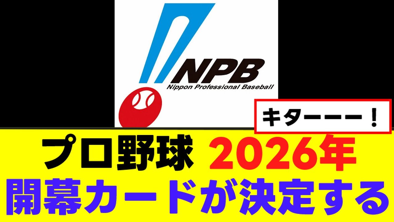 プロ野球2026 年開幕カードが決定する。 日本野球機構はいつか 2026 年のセントラルリーグの日程を発表した。来年は 3月27 日金曜日に開幕。開幕カードは巨人大阪半身 [音楽] DNA タイヤクルト広島中日となっている。 1球団あたりの試合数は今期と同じ 143 試合。セリーグのクライマックスシリーズはファーストステージ初戦が 10月10日、ファイナルステージは10 月14日を予定している。 なんで優勝チームの阪神がビジター開催なんだ?阪神の本拠開催が毎年平日なの辛い。 開幕が巨人対半身は激アだな。 B クラスの広島は阪神に譲ってもらえてラッキーだな。 プロ野球ファンはこの日が待ちしいだろうな。パリーグはまだ発表されてないのか。 [音楽] オリックスが来年B クラスになったら阪神は強セラで開幕できるのかな? 強セラ無理ならホットMOD でも良かったと思うけどな。 来キもプロ野球が楽しみです。 南マキチャンネルは現在動画編集者を募集 しています。興味のある方は動画概要に あるメールアドレスにご連絡ください。