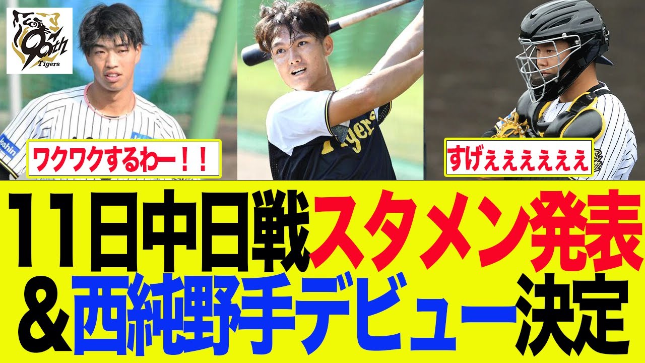 【阪神】11日中日戦のスタメン発表&西純野手デビュー決定 阪神ファンの反応集