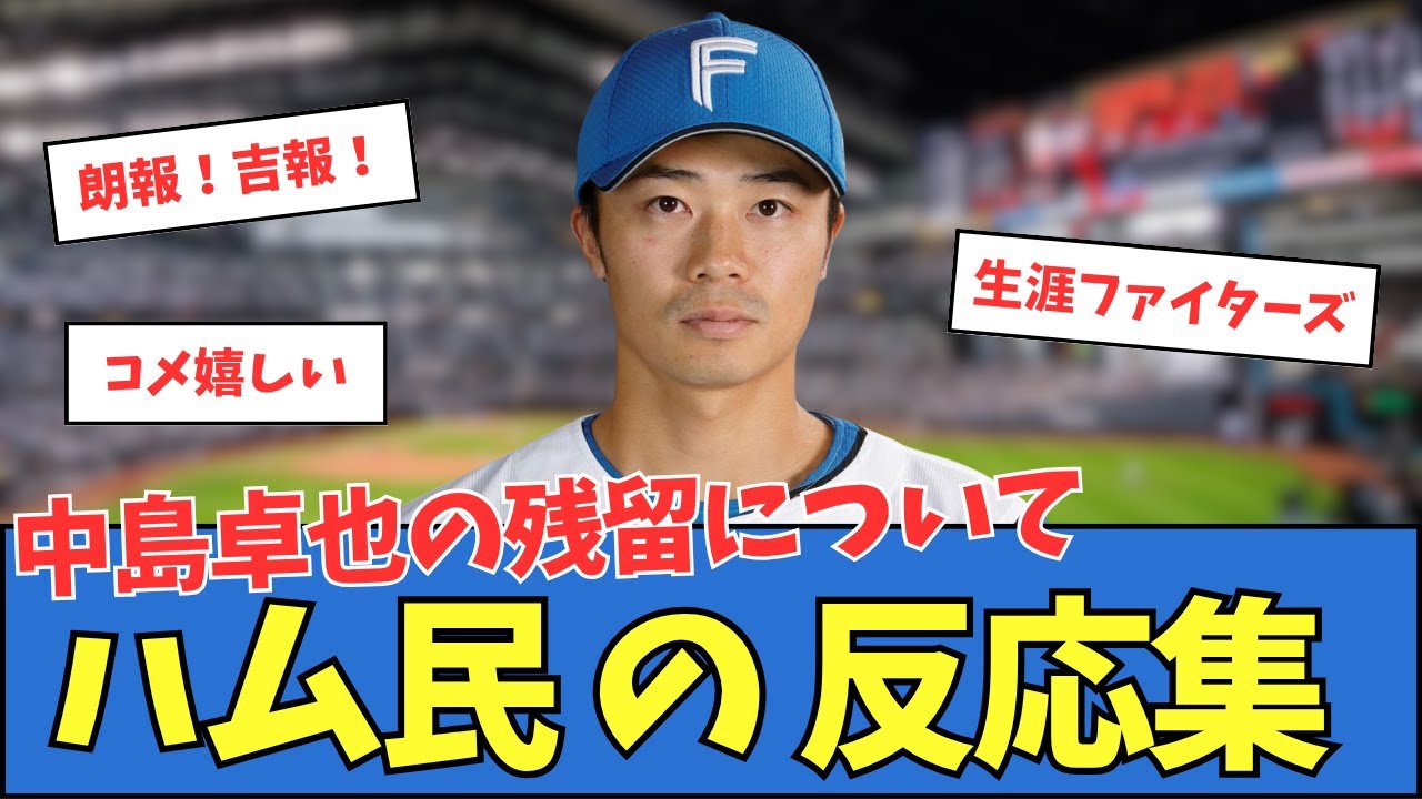 [音楽] 日ハム中島徳の残留民の反応集日本ハムの中島拓内也種が 7日保有するF を行使せずに残留することを表明したエスコンフィールドで会見し FA を持っているからというのはなく来年もファイターズでやるという気持ちで過ごしていました と語ったプロ 17 年目の今期は限られた出場機会の中でも 32試合に出場 打率3割さん無3人で出塁率は5 割をマーク。ベテランとしてシーズン 2位 となったチームを支え。出場機会が少ない中で最低限の仕事はできた と手応えを口にした。 18年目で35歳を迎えるライキは この年になっていつ終わるかわからない状況で 1 年でもユニフォームを来てやりたいと思っている。今年は大チャンスだったと思うけど優勝できなかったので何かが足りなかった。 大面の優勝に貢献できるように頑張りたい と覚悟を見せた。これは朗 さすがにFA するとは思ってなかったけどたくさんからはっきりファイターズでやりたいと聞けたことが嬉しい。 [音楽] 少ない打席数の中でも失塁率 5割はさすがです。 若手中心の日ハムにとって貴重なベテラン。 中田西は太田と言った同時期に活躍していた選手が放出されても中島はこうして契約してもらえるあたり 1 戦力として以上に球団から高く評価されてる存在なんだと思う。 途中2 軍に落ちたのも謎だった。守備総塁も良かったし優勝を知るベテランとしてまだまだチームに欠かせない。 たくちゃんありがとう。来年もファイターズをよろしくそして新庄監督を同上げしてください。 来年もカモ隊の体調としてない野種を背中で引っ張ってほしい。 たくさんファンとしては何とも嬉しいニュース。欲を言うともう少し試合で見たい。 あなたの感想も是非コメント欄で教えてください。ご視聴ありがとうございました。 た。