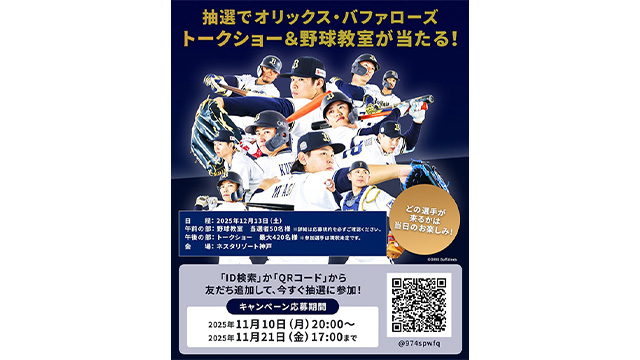 オリックス・バファローズオフィシャルスポンサーであるサムティホールディングス株式会社(以下「サムティHD社」)は、同社の子会社であるネスタリゾート神戸の企画・運営のもと、バファローズの選手を招いた「プロ野球選手と楽しむ!サムティドリームベースボールフェスタ2025