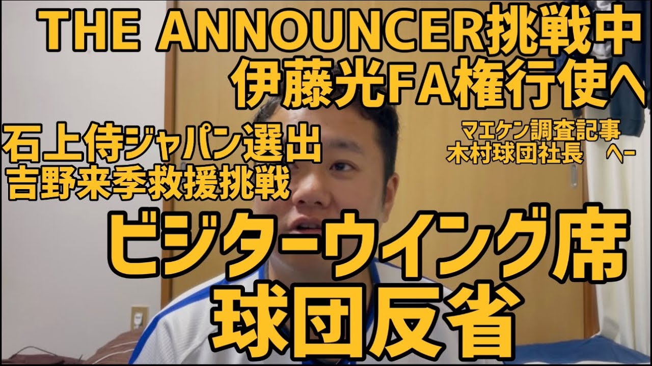 [音楽] こんばんは。銀猫パンチです。 こんばんは。お久しぶりです。1週間 くらいね、あの、開いちゃいましたけど、 ま、特にね、ま、ニュースもなかったし、 ちょっとね、ま、僕自身ちょっと色々あり まして、あの、動画の感覚が開いちゃい ました。ということで、えー、ま、今日の 動画は、ま、最近のベイスターズニュース ね、ま、適当に気になったニュース ちょっと拾っていこうかなということで、 ま、まず、ま、ベイサーズニュースじゃ ないんですけど、ま、いきなりね、ま、 自分の告知なんですけど、ま、あの、今 ダゾンでやってるGアナウンサーっていう 企画、ま、なんかダゾーンが作る初めての リアリティ賞、あ、それ何なのかって言う と、あの、実況者を新 発掘しようみたいな企画で、それがま、 リアリティ形式で、あの、今#4ぐらい まで行ってんすかね。ダゾンで無料で アプリでね、見れるし、ま、 YouTubeでもね、見れるんですよ。 ダゾンベースボールのアカウントかなんか で。はい。そっちは見れるので、ま、 シャープ123は、あの、6に映って なかったんですけど、シャープ4で、あの 、矢沢フューチャー会となっていますので 、はい、是非そちら興味ある方いたら、 あの、ま、シャープ1から見ていただいて もあれですし、ま、興味ない。ま、 そもそもね、ま、そんなの興味ないって人 は、ま、別見なくてもいいしみたいな ところで、はい。Gアナウンサー挑戦中と いうことで、はい。えー、それが、ま、 動画が上がってますと。はい。ということ で、えー、ま、ベイスターズ周りの ニュースとしましては、ま、伊藤ヒカルが FA権のあの講師を、ま、検討というか、 ま、ほぼFA権使って、まあ、多球団の話 を聞くみたいなあのニュースが出てました ね。うん。ま、でもこれはもう本当にね、 ま、ファンからしてみれば、あのね、ま、 もしも何かがね、誰かが怪我した時にね、 やっぱり キャッチャーってやっぱ買え効かないです し、いきなりね、誰かは入って言われて できるポジションじゃないと思うんで、ま 、ファンとしては伊藤ヒカルがね、こうい てくれた方が そりね、助かるというかね、いいんだろう なと思うんですけどやっぱまあ選手の身 からしてみればもう数少ないね。野球人生 。あともう伊藤ヒカルも17年目とか18 年目ですよね。もう35とか6とかもう あともう本当にこう プロのキャリアま、あとどれぐらいできる かわかんない。ま、キャッチャーだからね 。もしかしたらこっからあと10年ぐらい やんのかもしんないですけど、あの、もう 本当に自分がその なんて言うの、ま、このまま終わらねえ ぞっていうことですよね。あの、DNAだ とモヤモとユダいてメインで、え、松尾が いて若いので、で、ベテラン枠では、ま、 トばが今一軍でこうスタンバイずっとして てみたいなところで、ま、なかなか今 DNAのキャッチャーってもうこう12 球団見渡しても、まあなかなか、ま、阪神 とかもね、結構梅野と、ま、坂本がいてね 、その次のキャッチャー誰なんだみたいな ねとこだからこなかなか若選手だったり、 そのもう固定化されてるとメンバーが レベルがちょっと高くてはい。っていう とこで、ま、伊藤ヒカルになかなかお、8 がこう本当それこそ誰か怪我しないとお蜂 が回ってこないっていう状況ならもうね、 外から見ても分かるし、ま、本人ね、その 辺考えて、ま、出場機会、ま、どこまで 行ってもやっぱね、プレ級選手は、プレイ 級選手というか、ま、自分が出ることでね 、こう価値を出していくというか、ま、 そこのサブみたいなところに、まあ、行き 方ですけどね。もうサブみたいなところに 受け入れてその なんだろうチームを裏から支えるっていう ね、割り切って生きてる人もいると思うし ね。まだまだ俺やれるよっていうね、野心 まだ行けるぞみたいなうん。俺できるよ みたいなあの気持ちが あるね、控えにあんじてる選手もいるだし 、ま、伊藤ヒカルはね、もうそっちだと 思うんでね。まだまだ燃えね、燃えてると いうか、まだやれるよ自分ってね、思っ てる方だと思うんで、ま、だから今のこの ね、ベースターズ残っても試合には、ま、 メインではなかなか出れないっていう状況 も考みて、 ま、F権というかその多球団の話を聞いて 、ま、使用出場機会だったり、その自分の ことをね、ま、ベイシターズもね、かなり 評価してると思うんですけど、伊藤ヒカル のこととはなんですけど、ま、現状やっぱ 試合になかなか簡単には出れないという ところもあるんでね。ま、ファームではバ めちゃ打ってるんですけどね。うん。 やっぱなかなかそういうね、打ちまくった からね、出れるかっていう 状況でもないんでね。うん。なんか なかなかちょっと難しいなと思うんです けど、ベイサーズ出場機会を確保するって いうのはね。だからうん。ま、どういう 結果になろうともね、ま、本当に本人の 選択ですしね、本人の権利だし、試合出 てる