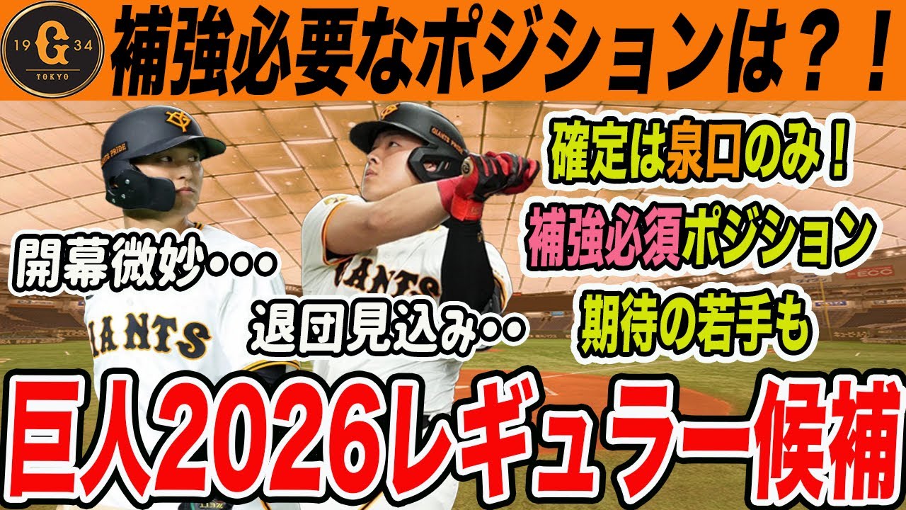 【巨人】誰がスタメン奪う!?2026巨人レギュラー予想&補強ポイント!FA選手の獲得は?! 読売ジャイアンツ