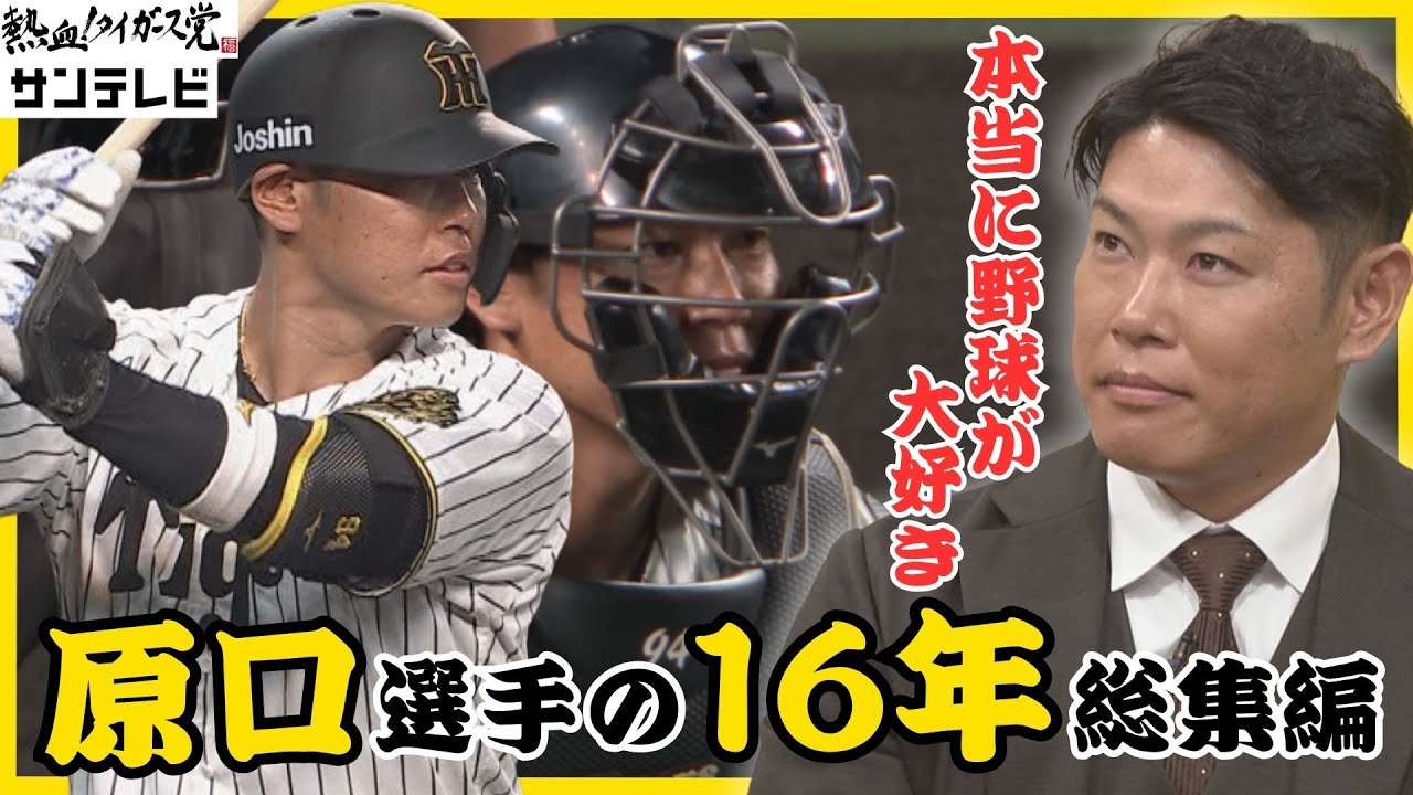 2023年開幕の3戦目。代打で出場し、 岡田監督就任後チーム初ホームランは原口 さんでした。 2023年シーズンは台での切り札として リーグ優勝、そして日本1に貢献しました 。 [拍手] あ、 俺が引なかったからね。もう [音楽] ってましたね。ま、最高のために頑張ってきた。よっしゃ。 3 テレビありがとう。みんな見てくれてありがとう。最後までいやあ、バボ バボ。こちらこそありがとうございます。 そして去年の5月16日は4 番で起用されてスリーランホームランバンテリングです。そして去年の田端には [拍手] 9回2 アウト満塁で大場。ライトへのヒットでランナーが 2人返ってさよなら。 そして去年のオフリーエージェントを行使しますが残留を決断します。 娘があのタイガスのユニホ来てる、ま、パパが見たいっていうのを言葉もねかけてくれたんで、ま、それも、ま、嬉しかったなとはい。思います。改めて タイガースに残っていただきましてありがとうございます。 ありがとうございます。こちらこそ1人1 人がね、自分の役割をね、え、倒すればどっち強いチームだと思うので、ま、ワンピースにね、僕も、ま、なれるようにしかし限られたチャンスをなかなか生かしきれず 9月でした。 今シーズンを持って現役を引退いたします。 少し、ま、寂しい気持ちもありますけど、多くの方々に支えられて、え、ここまでやってこれたっていう感謝の気持ちの方が大きいですね。 空はまれて君のようにくすんでどこまでもやがてくえき出したし 原 [拍手] [拍手] の [拍手] 空はれて君のようにどこまでも [音楽] 大病を患らった時どうなるか分からない命を病院関係者の皆 様作っていただきました。今こうしてこの 場に立っていることがどれだけ尊いことか 、どれだけ幸せなことか 決して当たり前ではないなどと改めて実感 しています。僕の野球人生を表してるかの ような応援化を作っていただき最高の応援 をありがとうございました。 大半は世界一です。 幸せな野球人生を最高の時間をありがとう ございました。 [拍手] 10 分弱のVTRにギュっと16 年込めさせていただきました。きっと涙してご覧になっているファンの方もいらっしゃるんじゃないかなと思いますが。原口さん振り返ってみて改めていかがですか? うん。いや、もうね、こんな長く VTR 作っていただいて本当にもう感謝しかないです。ありがとうございます。なんか色々あの若い時のなんか気持ちを思い出しながらはい。見てました。 どんな16年間でした? うーん。 うん。ま、ここまで長くできるとは思ってなかったですし、やっぱり若い頃は怪我とかやっぱりそういうのが多かったので、もう本当に一軍に上がりたいっていう気持ちでもう日々練習してたのでうん。終わってみたら間だったなっていう感じですね。 うん。うん。本当にずっと絶えず原口選手って こう私たちの前ではずっと前を向いて戦い続けて うん。 来られたイメージがすごくあって、それにファンのみんなも一緒にこう応援したり力をもらってたりしてたと思います。その言動力みたいなところは原口さんにとって何でしたか? うん。 ま、本当に、ま、色々ね、怪我したり病気したり苦しいこともあったんですけど、本当にまずやっぱ野球が大好きだって、もうこれはもう本当に [音楽] 野球を始めた頃の気持ちから変わらずそのままあの年を重ねてきたっていう感じでもう本当にそれが 1番大きいですかね。はい。 うん。野球が好きというその思いで 16 年頑張って来られたということですね。 ではここで改めて原口選手の、え、成績を掘り返っていきましょう。じゃ、橋本さんお願いします。 はい。 はい。 ご覧いただけますかね? はい。 はい。ご覧のように、え、プロ 16年間通算564試合、え、 274アンダホームラン29152 打点ということで、ま、 2018年VTRにもあった通り1 年間の球団の代打でのヒット記録記録ということで 23本代打率4割飛んで4塁と いう2018 年ではありました。ただこのシーズンも 9 月に原口さん左手の指骨折してましたよね。 はい。そうですね。 うん。 本当にこう簡単じゃなかったと思うんですけどどうでした? そうですね。本当にあのもう骨折してすぐあの治療家の先生のとこに行ってもう治療してもらってなんとか [音楽] 2週間で戻りたいっていう話をしてて はい。はい。 で、なんとか痛みが引いたぐらいで 行けるっていうなったんで はい。 ま、そこも、え、チームのスタッフの皆さんにも助けてもらいながら、あの、なんとか最後 [音楽] 1 本打てたので、ま、本当にやっぱそういう記録に並ぶとか抜くっていうことはそれだけやっぱ大変なことなんだなっていうのをもう経験できたので 良かったですね。あの2018年の4 割超の代打代打率こうあそこまで代打でこう打てる引血ってどういうのがあるんですか? [音楽] うーん。そうです。ま、やっぱり自分の技術と頭の中がすごくマッチでしてたっていうか、 頭の中しっかり整理してうん。 え、自分のスイングができたっ