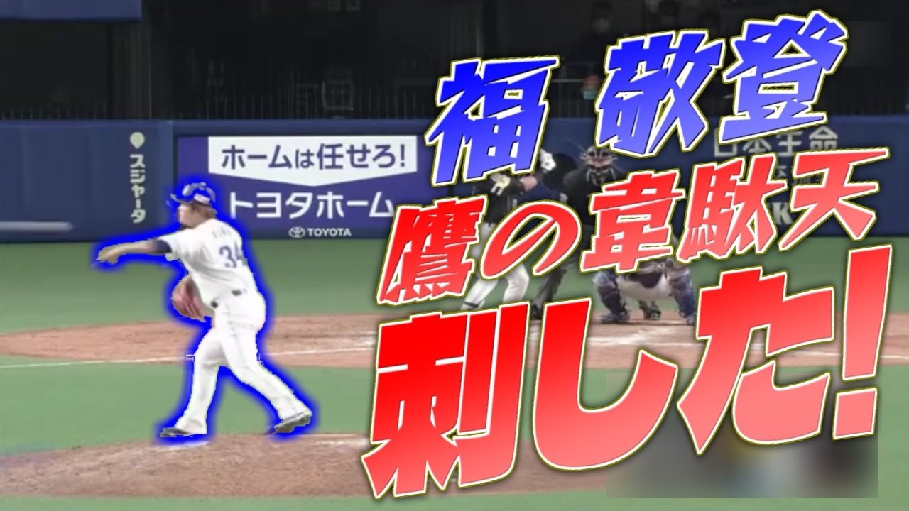 8回表、中村晃選手の代走で出場した周東右京選手を福敬登選手が見事牽制でアウトに!
