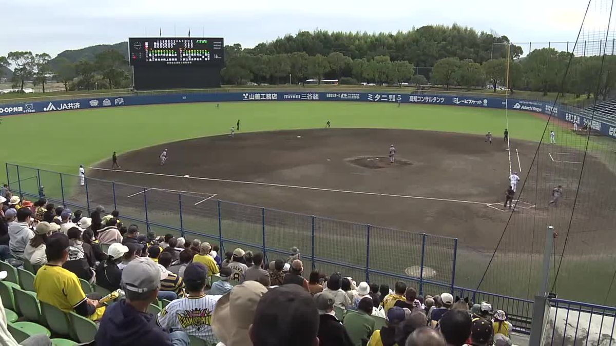 高知市の春野球場で行われた中日対阪神の練習試合。平日にもかかわらず県内外から約1200人のファンが駆け付けました。
