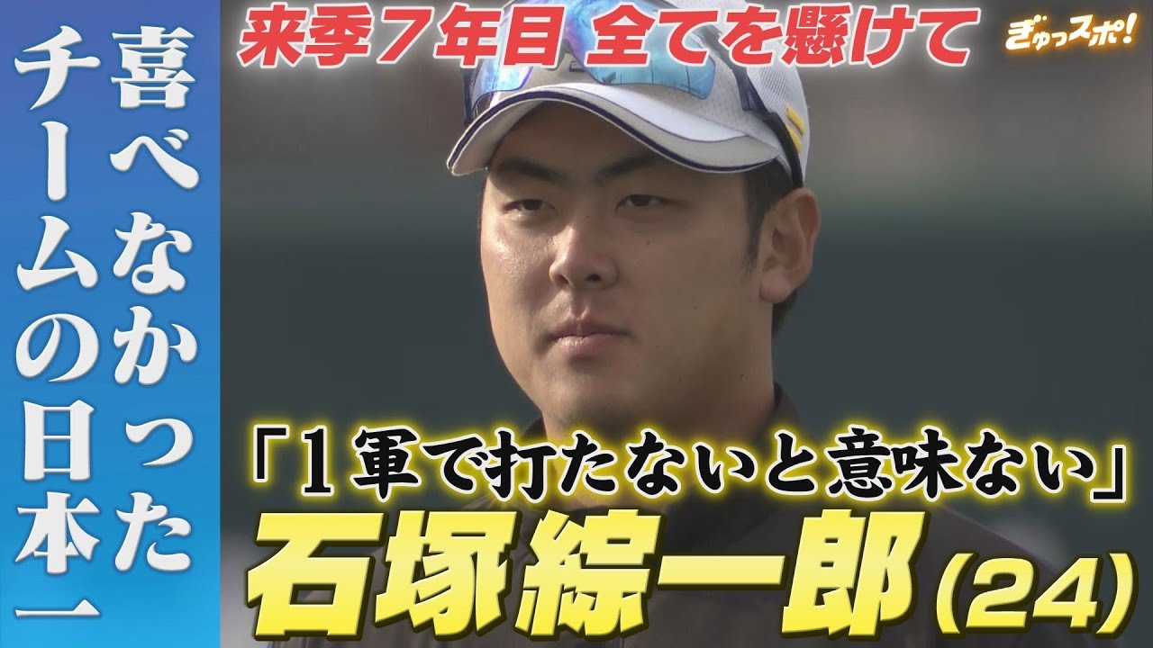 さあ、こっからスポです。よろしくお願いいたします。 今日もホークスの周期練習情報です。僕が取材に行ってきたんですが、ピックアップするのはこちらの選手。来シーズン 7 年目を迎える石塚総一郎選手なんですね。バッティングが売りの選手で、今シーズン 2軍では3割5 部という打率を残すリーグクの成績だったんですね。 うん。 ただ1 軍ではなかなか出場機会を得ることができなかったそんなシーズンを振り返って率直な思いを聞かせてくれました。 いつ選手よろしくお願いします。 お願いします。 誕生日おめでとうございます。 あ、ありがとうございます。ありがとうございます。 昨日 昨日はい。おね483 です。 引っ越したんです。 ま、僕が不動産会社ですよ。 ありがとうございます。 いやいやい ということで今日は後でも特に進行のある石塚総一郎をご紹介。恩気高ましくてすいません。え、高卒で入団して来シーズンで 7 年目。若たの中でも中心選手として頑張ってくれています。 入団した時はキャッチャーだったんですが、今や内外やいろんなポジションを担当。 春のキャンプから守備力アップを目標に掲げ、この 1 年泥だらけになって努力してきました。集こまで、え、かがですか?僕の中ではやっぱ守備はもう全てにおいていなんやかんや全部なんで そこはまずはい。1 から見直してみたいな。 全然守れないとやっぱに出れないっていうのはやっぱ感じてきてるんで本当最低限のまま絶対守れるっていう守備が必要だなと思います。今シーズン最初に思い描いてたシーズンとこのシーズン終わってみて振り返ってどうですか? いや、やっぱり悔しいっていうのが 1番大きかったかなとは思います。 ま、さ、スタメンで出て出てた試合でやっぱり、ま、インパクトなる結果っていうのが出なかったからこそやっぱりその試合出場につがらなかったのかなと思います。 僕が見てる2軍線では3割5 分以上打ってるわけじゃないですか。その 2 軍での成績っていうのはどう感じてますか?逆にやっぱ一軍で打たないといないと思います。 2 軍でいくら打ってもやっぱ一軍で全然打てなかったらその 2軍の打ち方ダメなんだ。 だから一軍と2 はやっぱ別物だと思うんで、やっぱ一軍人は別物と考えてバッティングを今までよりまた新しいことに挑戦してみたい継続してやっぱ進化してもらしいが入ってくるその季節なんですよ。やっぱそのドラフトの時期って新しい選手が入ってくるドキドキするもんですよ。 ま、新しい人っていう人がやっぱ使われ やすいとは環境だと思うんで、もう来年で 7年目になりまし て結構な、年数じゃないですか?この時期 やっぱいろんな人見てきてるんで、 ま、やんなきゃなと思いますね。そうです よね。 強い決意と覚悟を口にする石塚選手。 さらにクライマックスシリーズや日本シリーズに出場できなかった率直な思いも包み隠さ ず話してくれました。 放送シーズンって勝ちに貢献するじゃないですか。絶対そこにやっぱ入れ入れれなかったってのがすごい悔しい。 それこそ正事とかその若手とかがすごい出 てて、ま、みんな戦ってる中やっぱ最後力 になれなかったんだなとか、ま、戦力とし て出れなかったなっていうのが悔しかった ですし、チームが勝つ喜びよりも僕は ちょっと悔しいと思いながら見てはいまし た。うん。ま、勝ち喜べなかって言っちゃ 多分ダメだと思うんですけど、そこは本当 にもうあそこで活躍しなきゃいけないなと 思ってました。 ま、やっぱ全てにおいて僕は足りないと思ってるんで、ま、守備にしてもバッティングにしても本当に今までやってきたこと以上に絶対うまくなれるようにああいうすごい緊迫した場面で打てるような選手持っていきたいかなと思います。 うん。来シーズンは自分が活躍したっていう喜びもね、合わせてね、感じたいでしょうね。 ねえ、そうなんですよね。 ま、チームの、ま、喜ぶのが 1番かもしれませんが、 やっぱこの悔しさ、ハコシンっていうのはかなり大事になってきますよね、さん。 いや、もう24歳とはいえ、もう1年1 年勝負、1 年1年覚悟の年ですからね。 いや、でも壁高いんだね。自分のやっぱりね。 そう、よね、こう満足してないっていうの聞けて僕はちょっと嬉しいところもあったので、来シーズン特に期待したいなと思っています。皆さんも応援してください。 Ja.