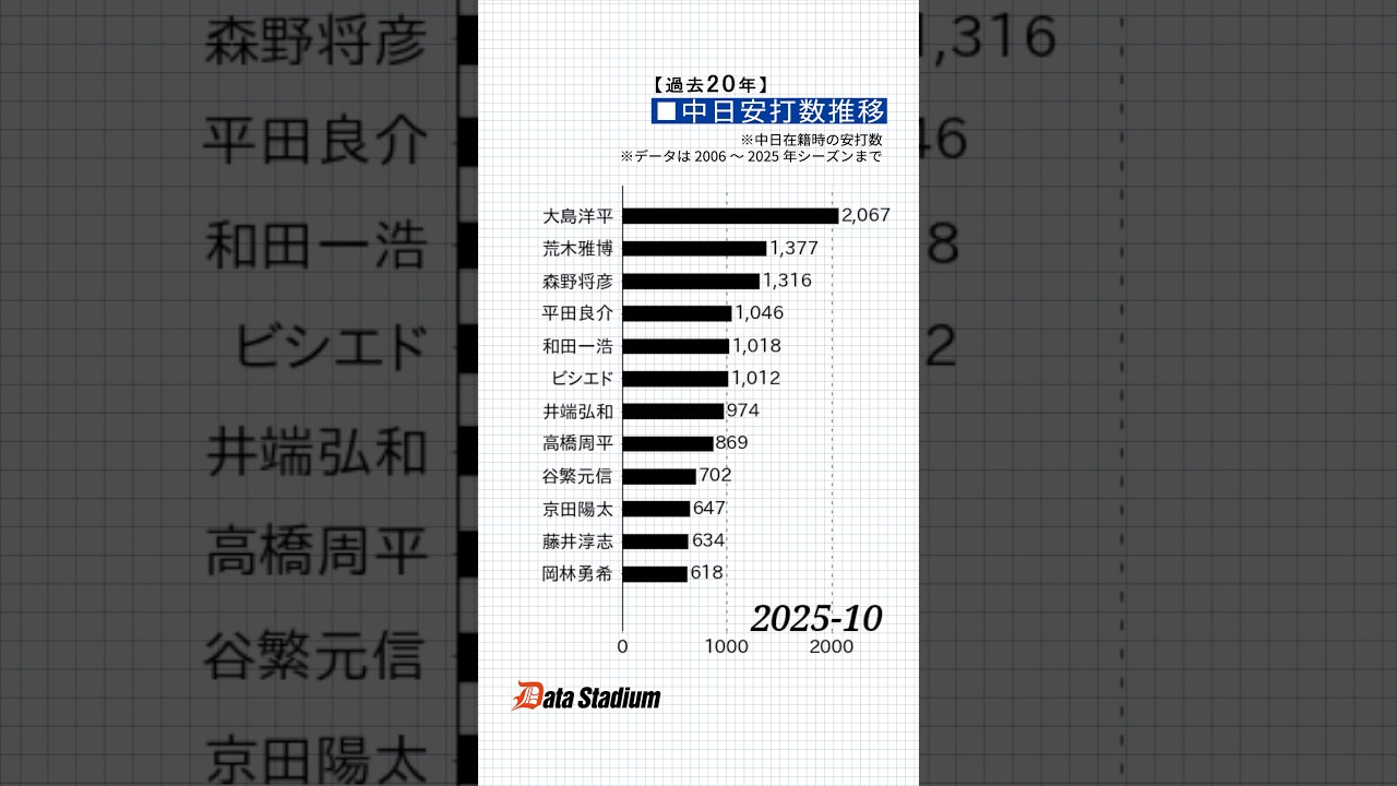 【過去20年!中日の安打数推移】 #shorts #プロ野球 #データスタジアム #中日ドラゴンズ