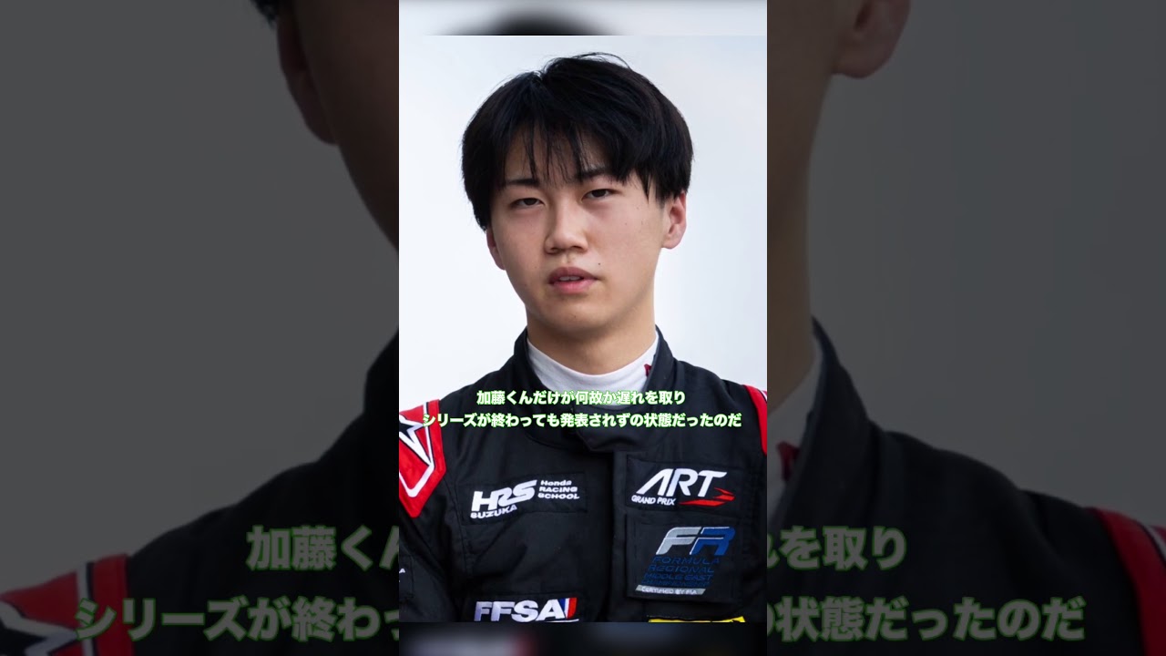 ついに若手日本人ドライバーの4人目がF 3戦を発表したのだ。その名加藤隊と本題 のドライバーなのだ。2023年のHRS を指跡で卒業し、2024年にはフランス に旅立って圧倒的な成績でフランスF4の チャンピオンを獲得。5年はフォーミュラ リージョナルミドルイースト チャンピオンシップとフォーミュラ リージョナルヨーロッパ チャンピオンシップに参戦し、どちらも 表彰台に登るなど高成績を残していたのだ 。しかし他の日本人ドライバーが次々に FIAF3へのステップアップを発表する 中、加藤君だけがなぜか遅れを取り シリーズが終わっても発表されずの状態 だったのだ。 しかし今週のフォーミュラリージョなるワールドカップに合わせてマを自して発表ということになったのだ。 これで山こ、中村人リーかなと加藤タトの 4 人が揃ってステップアップとなったわね。 皆さんは来シーズンのFIA3で日本人4 人組がどんな活躍をしてくれると思います か?コメント欄で教えて