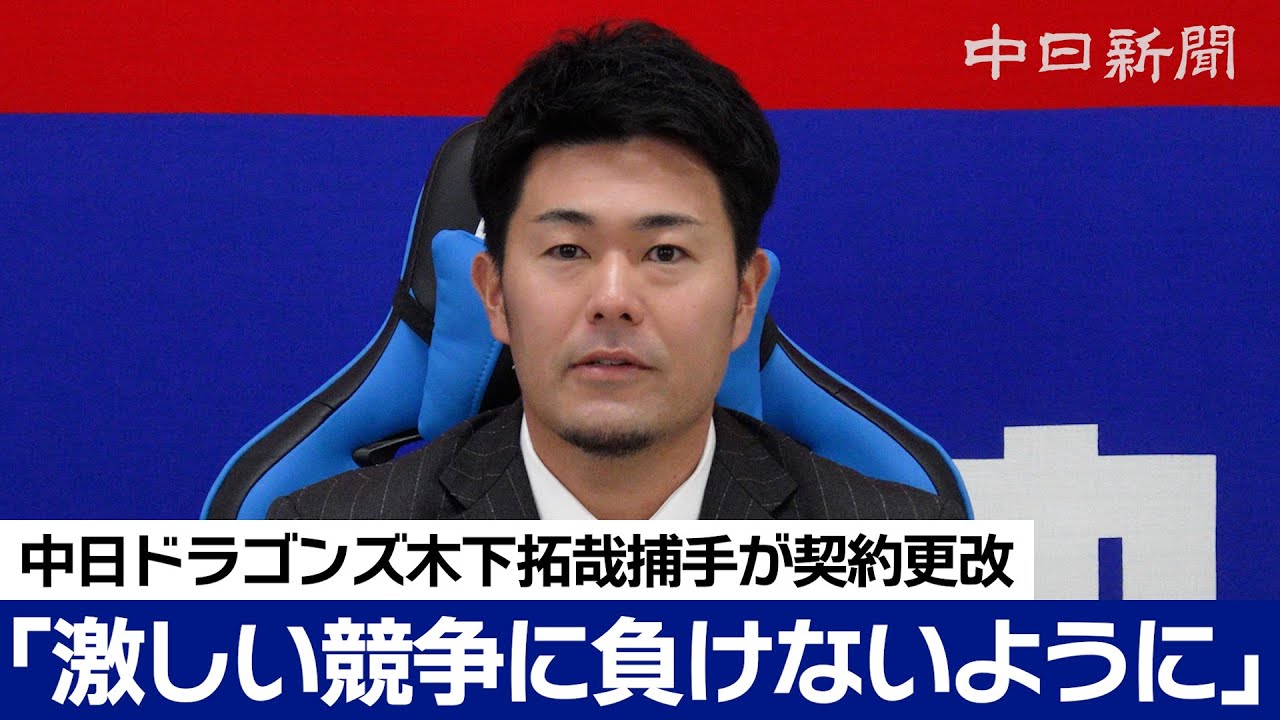 中日ドラゴンズの木下拓哉捕手が12日、ナゴヤ球場に隣接する選手寮「昇竜館」で契約更改交渉に臨み、現状維持の年俸7000万円でサインした。木下は昨年オフに球団と複数年契約を交わしている。