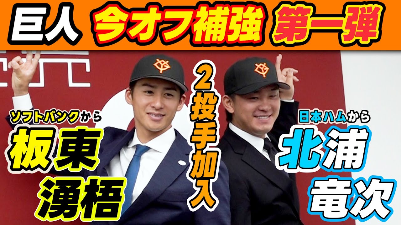 【今オフの補強第一弾】巨人が2投手獲得!日本ハムから北浦竜次・ソフトバンクから板東湧梧|入団会見