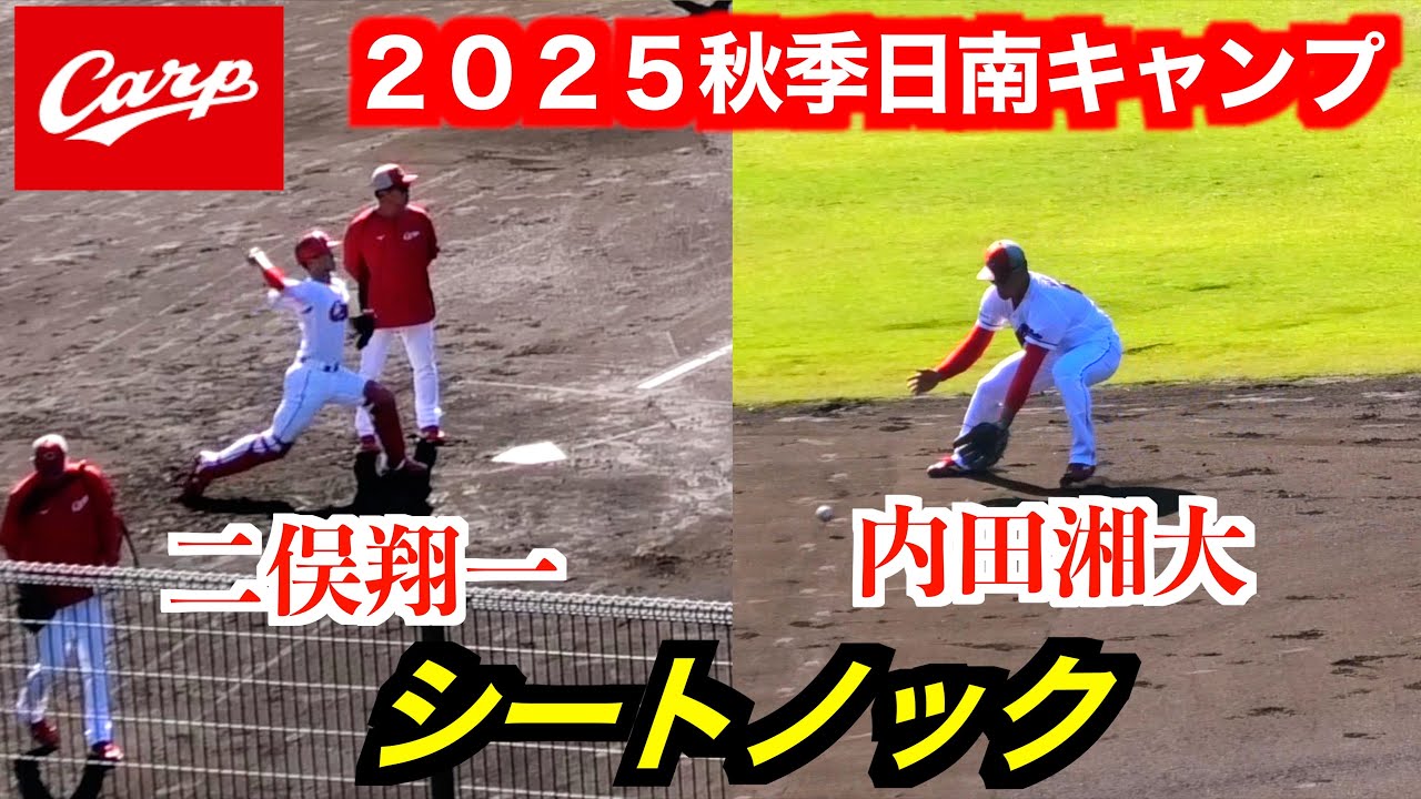 二俣翔一はキャッチャー/内田湘大はショート&レフト広島東洋カープシートノック !【2025秋季広島東洋カープ日南キャンプ】