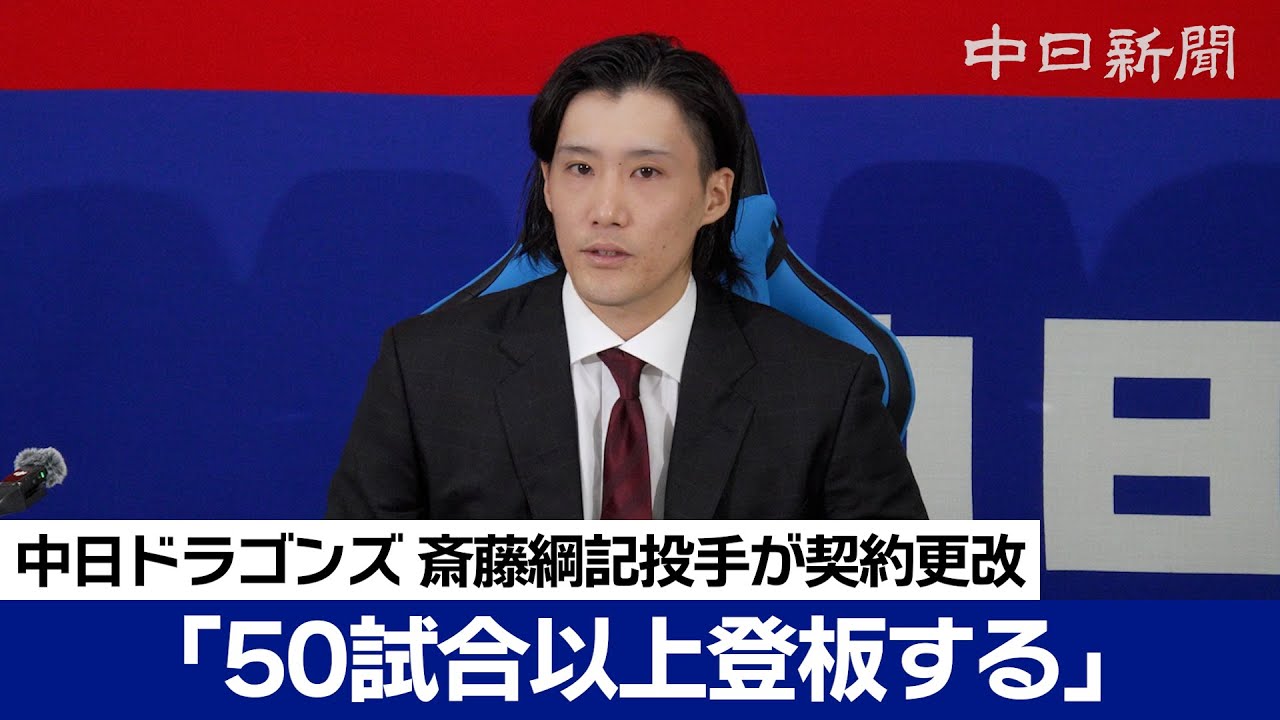 中日の斎藤綱記投手(28)が16日、ナゴヤ球場に隣接する選手寮「昇竜館」で契約更改交渉に臨み、今季年俸4500万円から1000万円増の5500万円でサインした。(金額は推定)