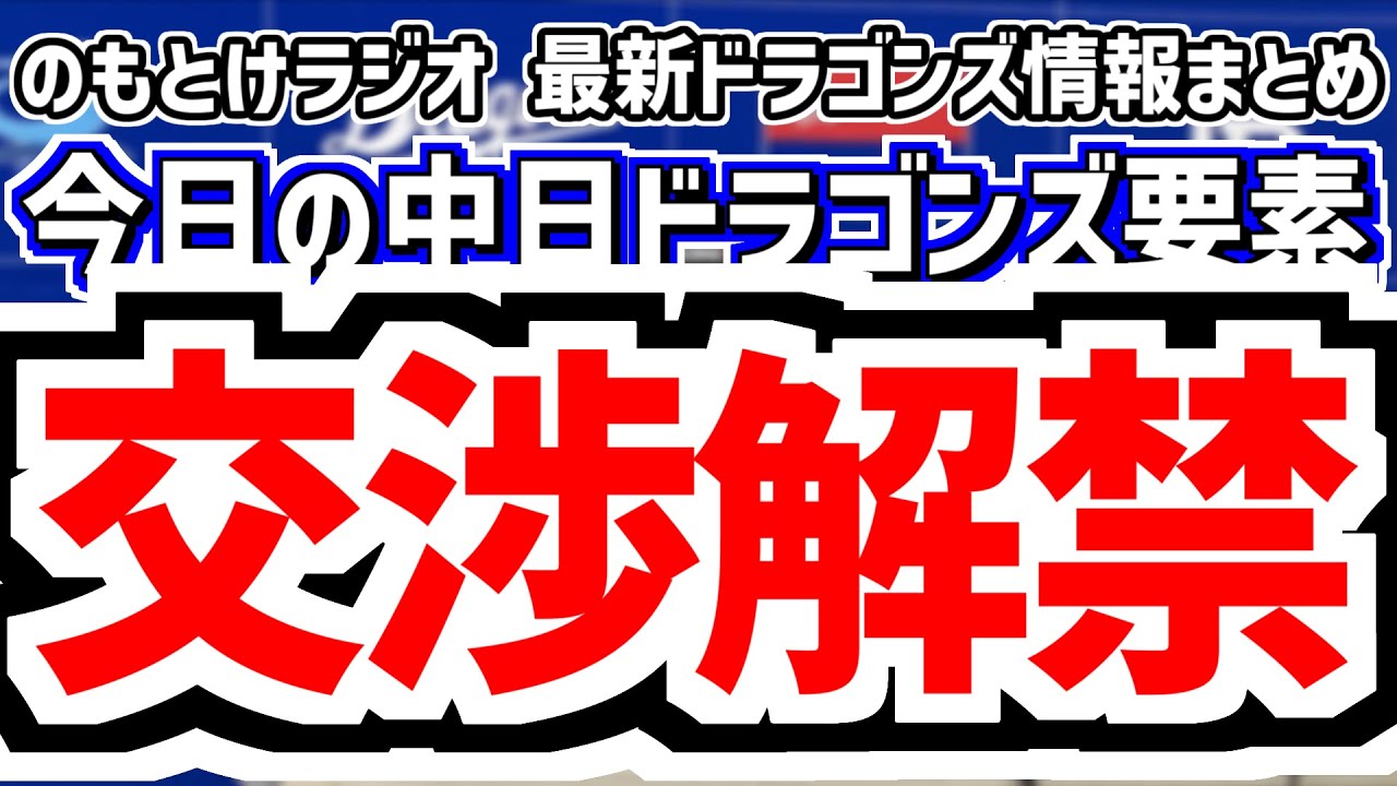中日ドラゴンズの今日の話題、最新情報まとめなどいろいろ話します。毎日深夜0時2分頃から1時間50分ほど生放送中(チャット投稿には2ヶ月以上の事前登録が必要です)。お便りは放送開始前までに【放送告知用X / Twitter】のDM、まとめサイトのお問い合わせフォームからお願いします。※お便りの紹介が一部遅れる場合がございます。