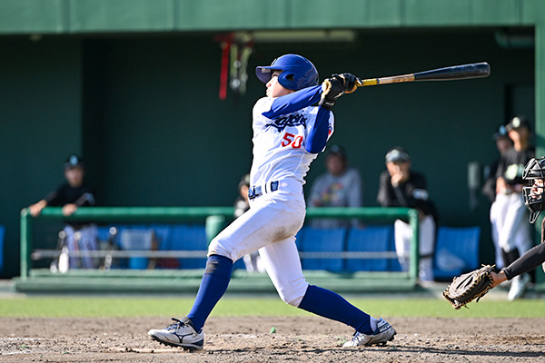 ホームランを放つ古谷選手