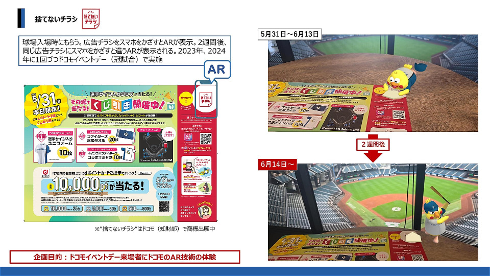 その上で、ドコモとの連携でファイターズとして取り組んだもののひとつが「AR(拡張現実)の活用」だ。