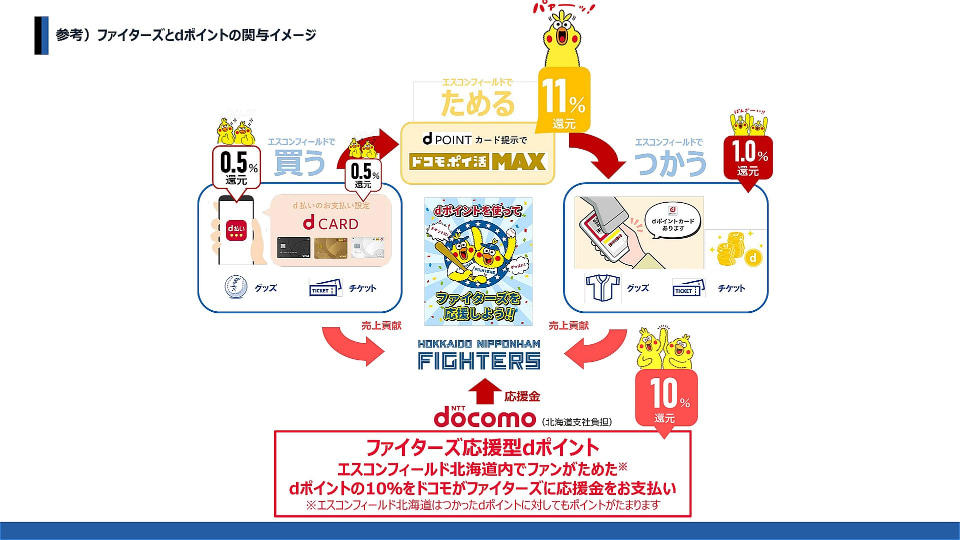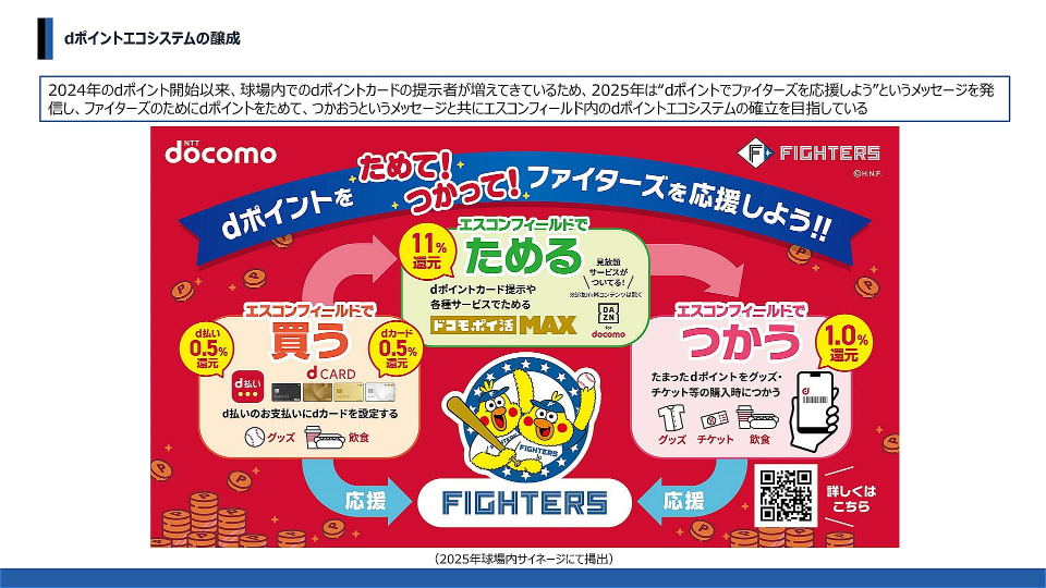 さらに2025年以降のメッセージとして、「dポイントでファイターズを応援する」仕組みも整備されてきた。