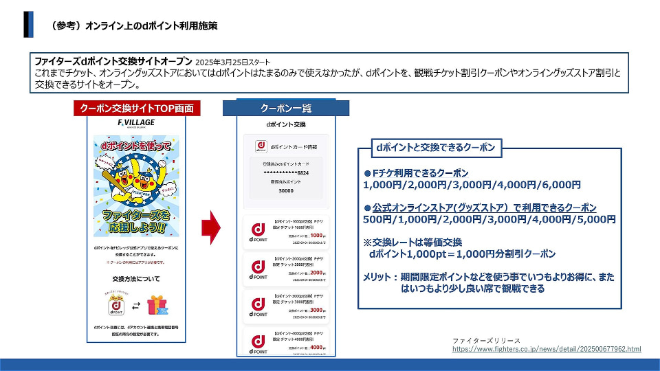 さらに2025年以降のメッセージとして、「dポイントでファイターズを応援する」仕組みも整備されてきた。