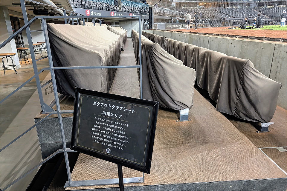 一塁側ベンチの隣には「ドコモクラブラウンジ」がある。食事と飲み物が付くオールインクルーシブ型のプレミアム座席となっており、選手たちの座るベンチと同じ高さの目線で、フィールドを間近に見ることができる。