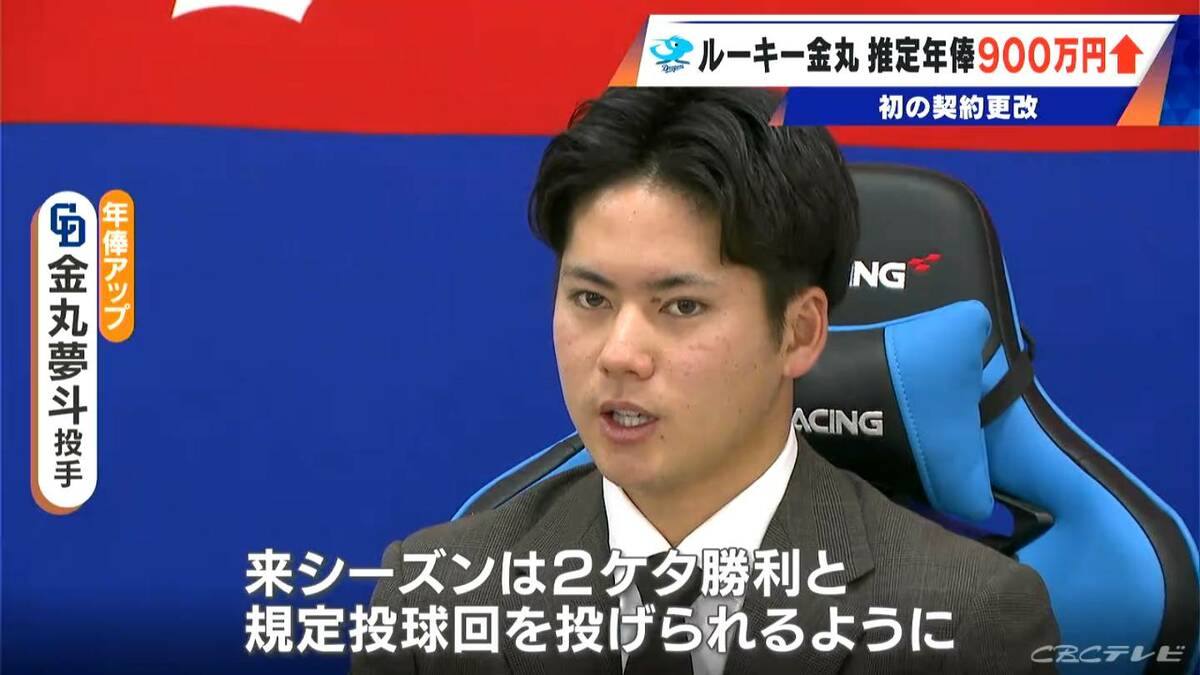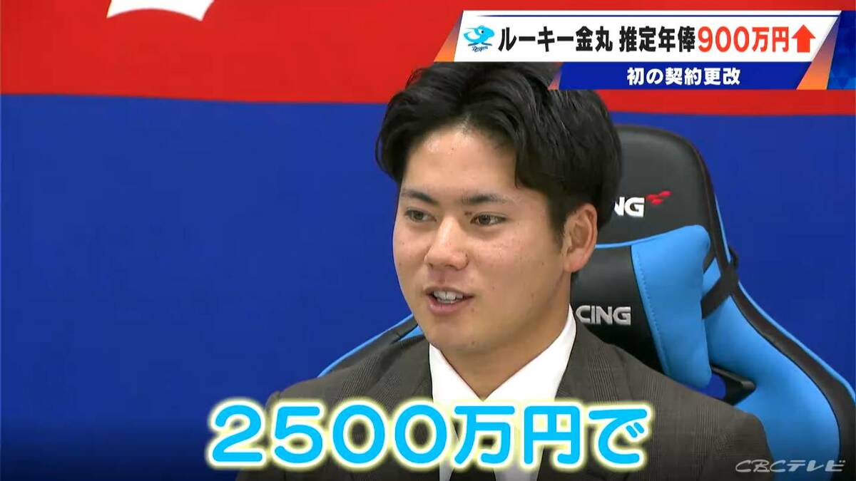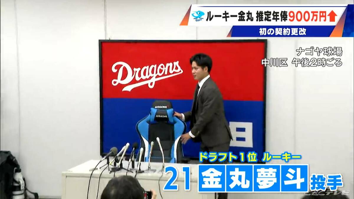 去年ドラフト1位で入団したドラゴンズの金丸夢斗投手(22)が、18日契約更改交渉を終え、900万アップの推定年俸2500万でサインしました。