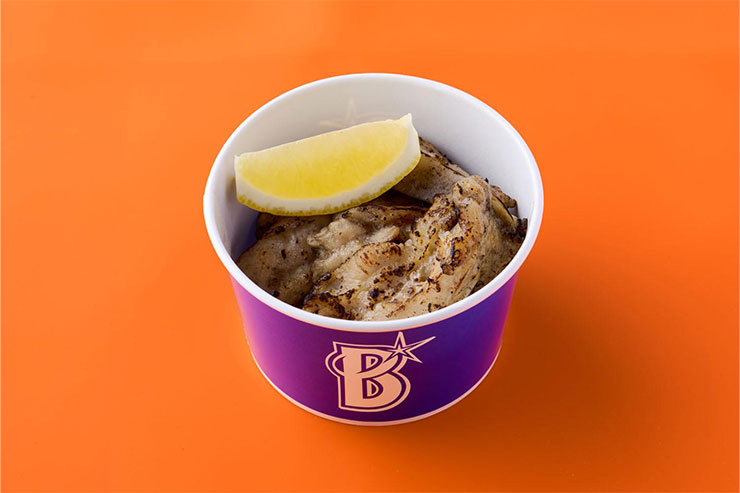 挽肉ではなく、中川颯選手の好きな胸肉のグリルチキンを使用した一風変わった一杯!