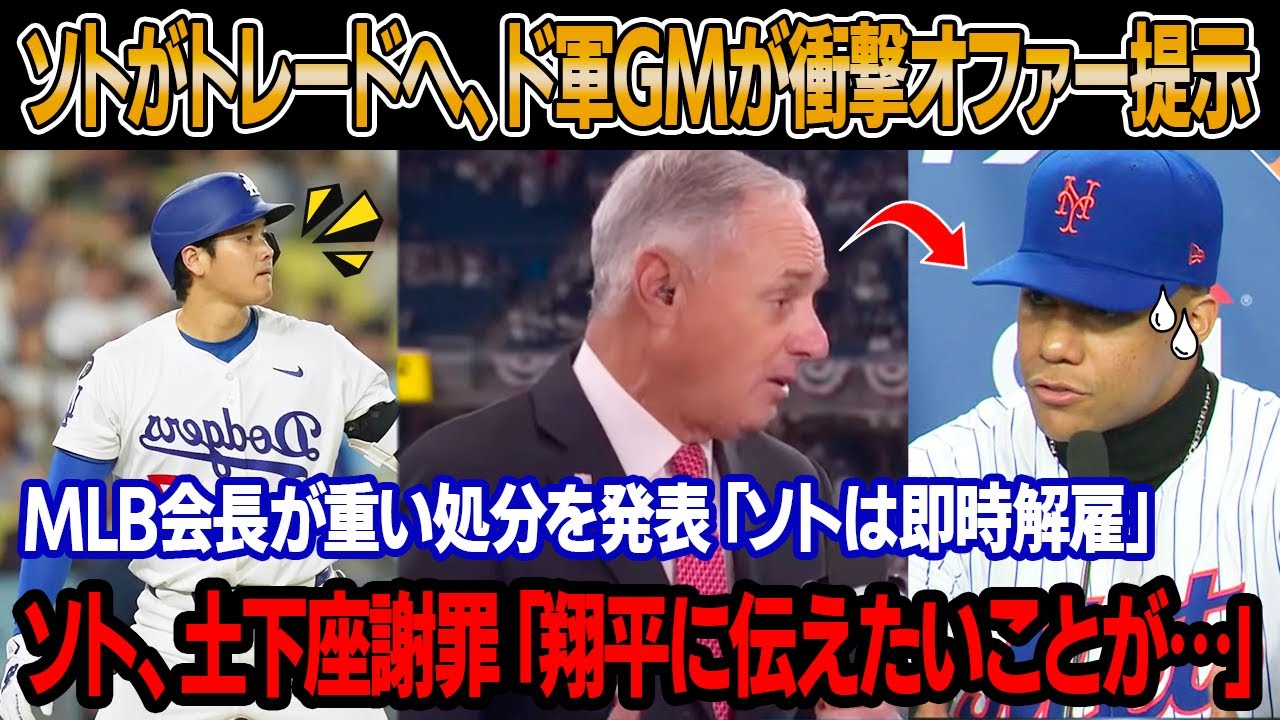 メッツのオーナーが緊急声明「 ソトはトレード候補入り」 ド軍GM、ソトに衝撃オファー!MLB会長が重い処分を発表「ソトは即時解雇」ソト、会見でまさかの土下座謝罪「翔平に伝えたいことが…」