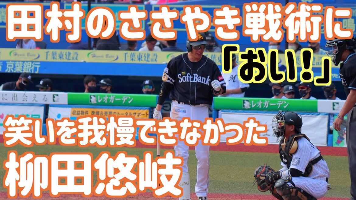 マリーンズ・田村龍弘のささやき戦術に笑ってしまいバッターボックスを外す。