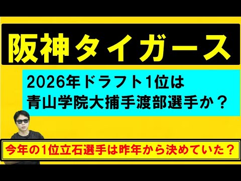 はい、サラリーマンスカウトです。え、 今回はですね、サンスポさんで記事が出て いたんですが、ま、青の渡辺選手ですね、 阪神、ま、競合で、え、行く可能性がある 、ま、価値のある選手はないかみたいな 記事が出ていましたので、ちょっとそこを 取り上げていきたいなと思ってます。はい 。ま、神宮大会ね、今やっている最中の中 で、ま、そういったものが出ました。ただ この動画が投稿される時には、え、ま、 もうすでに優勝とかね、え、決まってる 大会終わってるかなと思いますが、ま、 大額順調に勝っているという、え、段階で 撮っているわけなんですけど、え、その ようなね、えっと、記事が出ました。ま、 仏教代との後ですね。はい。で、え、ま、 球団関係者が語ったみたいな、ま、この 時期に出る、え、ものですので、ま、 そんなにこうね、あの、大げさに捉えても しょうがない部分もあるかななんていう風 に思うんですが、ま、とはいえですね、ま 、ドラフト直前だってね、別に合ってる、 合ってない。え、みたいな話はありますの で、ま、年柄年中ですね、ま、そんな感じ でちょっと記事があれば、ま、盛り上がっ ていければ、ま、それでいいのかなという 風には思って、え、います。はい。で、え 、ただですね、縦石選手に関して、ま、 阪神ね、え、3球団競合の獲得という、ま 、非常に今年実りあるドラフトに、え、 なったのかなという風に思うんですが、ま 、そのドラフトの後のね、コメントで、ま 、これが本当にそうだったかっていう ところは、ま、置いといてなんですけども 、あ、1年前から、ま、決めていたという 風に、え、コメントが出ていたという ところで、ま、井選手のやっぱり評価の高 さとか実力を考えると、ま、そういう風に 決めていてもですね、え、ま、ちょっとね 、話持ってるところはあるかなとか思い つつうん。まあ、せっかくね、こう入団し てくれる選手からすごく高く評価してた よって言った方が得意だったりはするわけ じゃないですか。え、ま、速攻までは わかんないですけど、でもやっぱり表が 高かったことは確かだと思いますし、 やっぱりその補強ポイント的な部分とか やっぱ試性とか、ま、そういうのを考える と早くから決めたってのは全然違和感ない 話ではあるんですよね。で、その中で、え 、阪神キャッチャーという部分、え、なん ですが、ま、ここもやっぱ渡辺選手と僕は かなりあるんじゃないかなと思っていて、 ま、直近で西尾さんともこう仮想ドラフト をやらせてもらった時にセリーグ担当で 渡辺選手を最初に入札、え、というところ で行かしてもらったんですけど、もちろん こう坂本選手がこういたりだとかですね、 ま、現凶の、え、部分っていうのは、ま、 その怪我とかなければみたいなところは あるかなとは思うんですけど、もちろん そのドラフトってね、あの、即こう使える かどうかというよりはやっぱある程度年数 が経ってからっていうところはあると思い ますし、ま、特にやっぱキャッチャーに 関してはやっぱ他のポジションよりも やっぱ時間はかかるみたいな風には言われ てるんですよね。キャッチャーよく6年説 とかっていう話が、え、出ていて、ま、 高校生でも大学生でも社会人でもやっぱ 大体こう6年ぐらいでこう戦力になってく みたいな、ま、そういうのがあるわけなん ですが、ま、だからちょっと高校生の方が 、ま、年齢の関係とかで、え、ま、いい みたいなね、話もあるわけなんですけども 、まあ、ね、ドラゴンズは石選手社会人と か、ま、割とこう1年目からこう出られ たりとか、まあね、ま、特にタイガスもね 、あの、岡田監督全監督が、え、ま、 キャッチャーはなんか高校生からみたいな 風になね、言われ方を、え、しいたんです けども、取るならやっぱそのジャンルだよ ねみたいな話があったんですけど、結局ね 、今こう出てるのってやっぱ坂本選手、ま 、明治代、ま、梅野選手、大学生とか、ま 、そんな感じで、え、になってますので、 ま、坂田選手って大学生ですからね。え、 ま、そういったところを考えると全然 キャッチャー1位、え、で、ま、 キャッチャーのね、こう大学生の1位って こう全然ないですよねっていう話はあの、 もう散々、え、ま、小島選手の時に、え、 していたんですけども、ま、小島選手が 17年ぶりに、え、大学生キャッチャー1 位というところで指名が、え、ありました ので、え、ま、これは、あ、2年連続に なっても全然変ではない。ま、17年 なかったわけなんですけど、ま、1回ある とね、え、なんかまた続きそうなイメージ も湧きますし。で、2026年が、え、 ドラフトっていうのが、ま、当然まだあと 1年後になるものですから市場的な部分 っていうのが、え、分からないんですけど 、分からないと言いつつも、ま、高校生 投手と大学生投手はかなり良さそうだな。 特に目玉になるような存在の、え、選手に 関しては、ま、山けさん