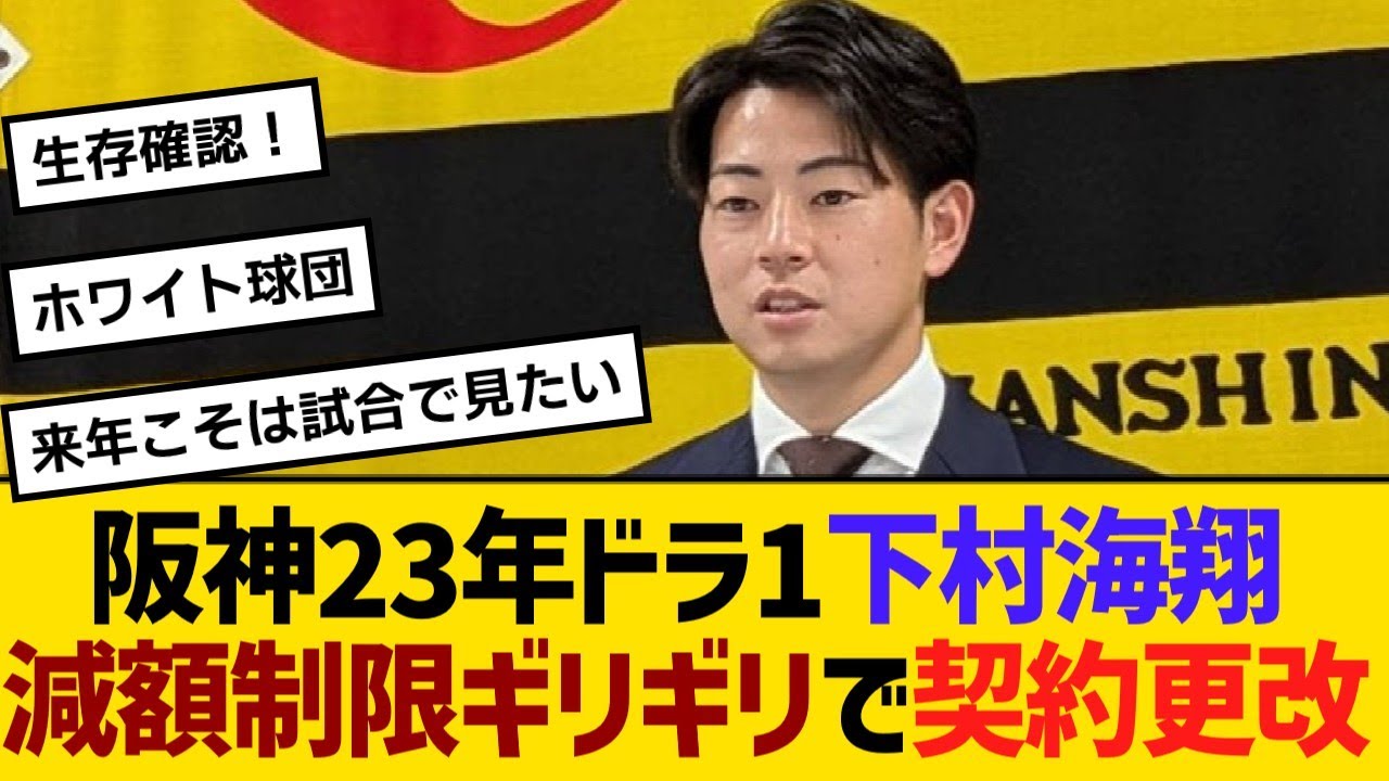 阪市23年来下村会と天学制限ギリギリで 契約公開。11月15日兵庫西宮の球団 事務所で阪神下村カト投手の契約公開交渉 が行われました。2023年ドラフト1位 の案は今期年1450万円から連額制限 ギリギリ25%ダウンの1100万円で サインしたと報じられています。昨年4月 に富手術を受け今期の復帰を目指してい ましたが実践登板は叶えませんでした。8 月にシート打歴撃を行った際少し違和感が あったと証し順調に行けば今年投げられる と思っていたので悔しいと振り返ってい ます。球団からは来年活躍するための1年 目の手術だったと向きな言葉をかけられ 焦らずにできるだけ早い段階での復活に 小準を定めたんですね。コミー ジョンって時間をかければむしろ強化されるみたいなイメージあるけど当然失敗することもあるからな。もう手術から 1 年半を上げてから再びのスローという状況は結構厳しいのかな。なんとか来シーズンは試合で投げているとことを見たい。 怪我を大学関係者やスカウトも含めて隠していたのか、それとも承知で球団が獲得したのかは分からないけどメンタル面も含めて厳しいようですね。 同じ手術をして大活躍の再起投手がいるので球団は再起スケジュールの波は持っているはずなのでなんとか頑張って欲しいのですか? 8 月のシート打撃の登板から報道が途えていましたので心配していましたが、やはり回復が一瞬一体だったようですね。確かに過去もの事例からだと手術から 1年から1 面半例の復帰が多いですが人により差はあるかと思います。とにかく状態が少しでも良い方向に進んでいってくれることを祈るばかりです。 トミー長手術からの復帰には個人差があり 、順調に進むケースばかりではありません 。8月のシート打撃で和感を覚えてから ベースダウンしたようでファンからは心配 する声が上がっています。トラフト1と いう肩書きには大きな期待がかかりますが 2年間公式戦登板なしという状況は本人に とっても熟じたる思いがあるでしょう。 大期は復帰3年目となり何らかの結果を 出さなければならない場を迎えると言え そうですね。 来年は非常に大事な年になるね。手術明けと Yある 程度投げれることを証明しないと再来年には頑張れ。下村をペースアップしたところで舐べなくなって本人もメンタル面と言っているように結構怖い。キャンプで少しでも上げていければいいんだけれど。 SGL のサブラウンドでよくトレーニング姿を見てました。勢はないですか?総力、瞬発力、垂直飛びと基本的な身体の折りよくすごいです。腕触れない分足越しの鍛錬に取り組んでいたはずです。 それとハルト投手と行動することが長かっ たので毛との向き合い方とかメンタル面と かも吸収できてるはずです。もう めちゃくちゃ期待してます。ジャイアンツ の山崎投手も大学4年に富ジョを受けて 入団2年目に復帰しました。下村投手も 来年復帰できれば同じなので期待してます 。決して焦らず慎重に今を不調整して来年 の夏前くらいに出てきてくれるといいです ね。来年はまだ戦力として計算はできない かもしれませんが再来年から本格化して くれれば十分です。阪神には同じく富ー長 手術を経験した党手という成功例があり ます。若くして手術を受けた党手は現在 ネジャー遺跡の噂が出るほどの投資に成長 しました。下村投手も同じ道を歩める可能 性は十分あると思います。球団には再木 投手や高橋ハルト投手の復帰スケジュール で培ったノーハウがあります。下村投手 自身も高橋ハルト投手と行動を共にする 機会が多く怪我との向き合い方やメンタル 面を吸収できているんじゃないでしょうか 。基本的な身体の折り欲の高さは折り紙 付きで腕が触れない分足腰の鍛錬に 取り組んできたと見られていますね。最近 も若くしてトミージョンを経験したけど、 今ではメジャー遺跡も噂される選手に下村 も輝ける甲子園で待ってるで。いい まっすぐ投げる仕カットなんかプロでも 十分通用するレベルに見えた。完成度も 高いし投げ始めたら早い段階で上でも 見れるんじゃないかなと思っている。今は 何を言われようといつか見返せば良い。 がメジャー行った後その穴を埋めてくれるのは下村君だと思ってる。初登板楽しみに待ってます。 阪神の投資ドラフトに対する厳しい声も上がっています。近年のドラフト 1 位投手はバ手、西純也投手、森木党手、下村党手、伊原投手と続きますが、戦力としての活躍は限定的ですね。 一方、村上投手、最党手、岩崎すぐ投手、噂投手といった主力投手はいずれもドラフト会からの成長組で消命の制度には課題があると言えるでしょう。 阪神に関しては投資王国と言われていますが、ドラフト 1 位が活躍している率は低いですね。村上投手、最木投手、岩崎投手、霧投手と全てドラフト [音楽] 1位ではありませんからね。かつては白田 投手二投手党のドラフト1位投手がいまし たが1の試合に登場したのかしないくらい の印象で引退されましたね。今