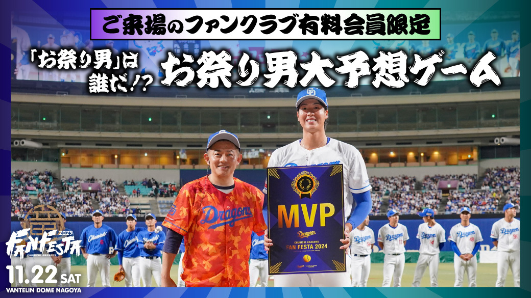 【ファンフェスタ2025】2025FC有料会員限定企画!『お祭り男』は誰だ!?お祭り男大予想ゲームを開催!:ドラゴンズニュース – 中日ドラゴンズオフィシャルウェブサイト