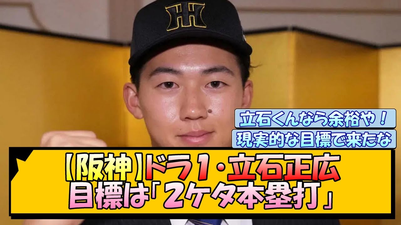 阪神ドラ1石弘 目標は2桁本類だ。 縦石時間がしっかりあるのでその時間を 効率よく使えれば自分のためになる。 自分の成長につがるように時間を使って いきたい。 縦石2桁本塁を目指して頑張りたい。 大山も森下も1年目本塁だ。1 桁だったし焦ることはないで。 縦石君ってすごい現実的な目標を立てるタイプよね。 2 桁本類だなんて寝てても打てるだろ。この選手なら ファンだから期待も大きくなってしまうけど とにかくルーキイヤーを一軍で過ごしていろんな経験を積んで欲しいで。 期待が膨らむけどどこで使われるかも注目やな。 これからも何Jの面白いすれを取り上げて いくのでコメント、チャンネル登録、高 評価よろしくお願いします。