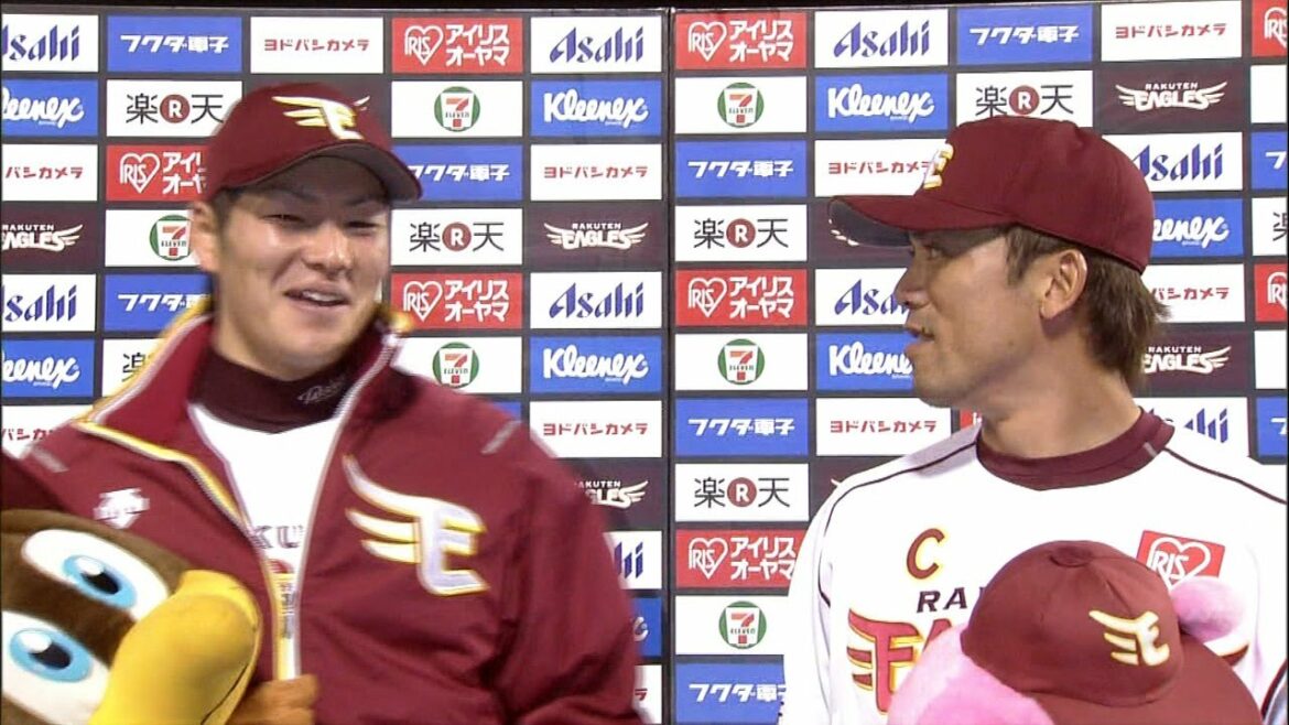 先制ホームランの松井、先発で好投した塩見、ベテランと若手のコンビでインタビューに答え、お立ち台を賑やかにさせた。 (4月24日 楽天-オリックス戦) 0424201204242012年4月24日Kスタ宮城Tohoku Rakuten Golden Eaglesイーグルスオリックスお立ち台ゴールデンイーグルスパ・リーグパシフィックリーグバファローズヒーローインタビュー塩見貴洋大阪東北東北楽天ゴールデンイーグルス松井稼頭央楽天神戸 NPBHUB.COM | The Fanbase of Nippon Baseball & Nippon Professional Baseball