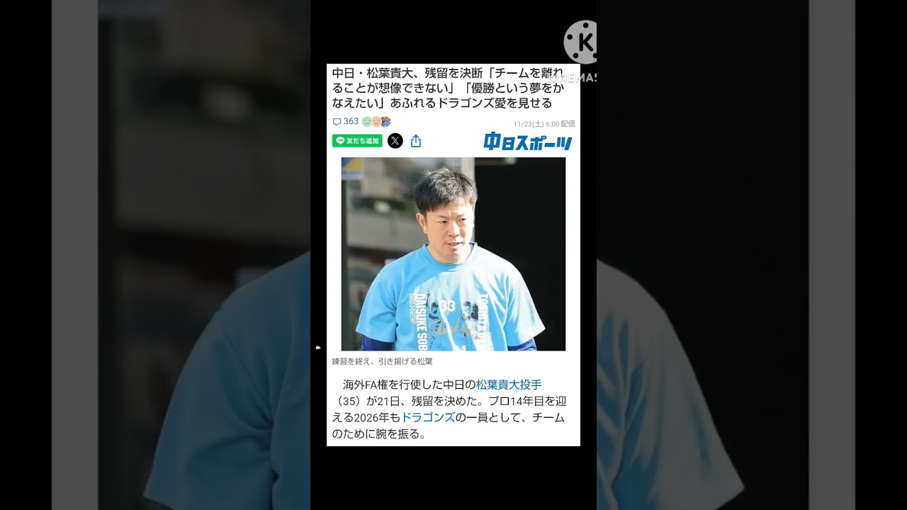 中日ドラゴンズ松葉残留決意で40歳までプロ野球選手を目指す #youtube #shorts #プロ野球 #野球 #中日ドラゴンズ #中日