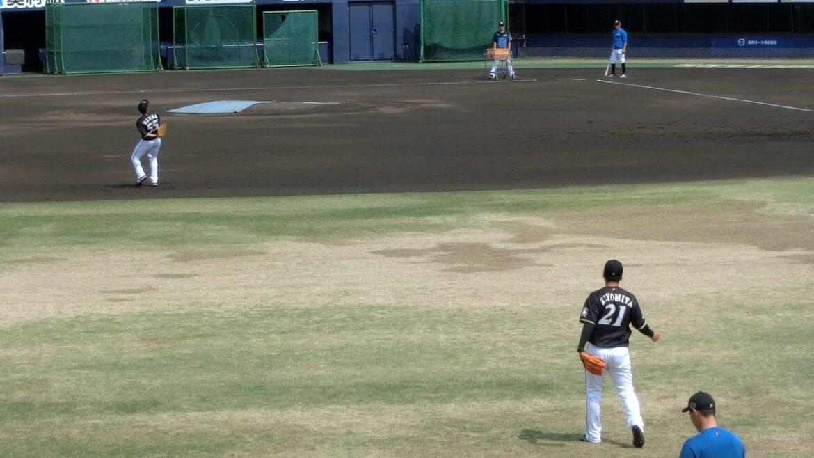 練習中、元気ハツラツ難波侑平選手が背面キャッチ失敗しました。 Hokkaido Nippon-Ham Fighters北海道日本ハムファイターズ鎌ヶ谷スタジアム難波侑平 NPBHUB.COM | The Fanbase of Nippon Baseball & Nippon Professional Baseball