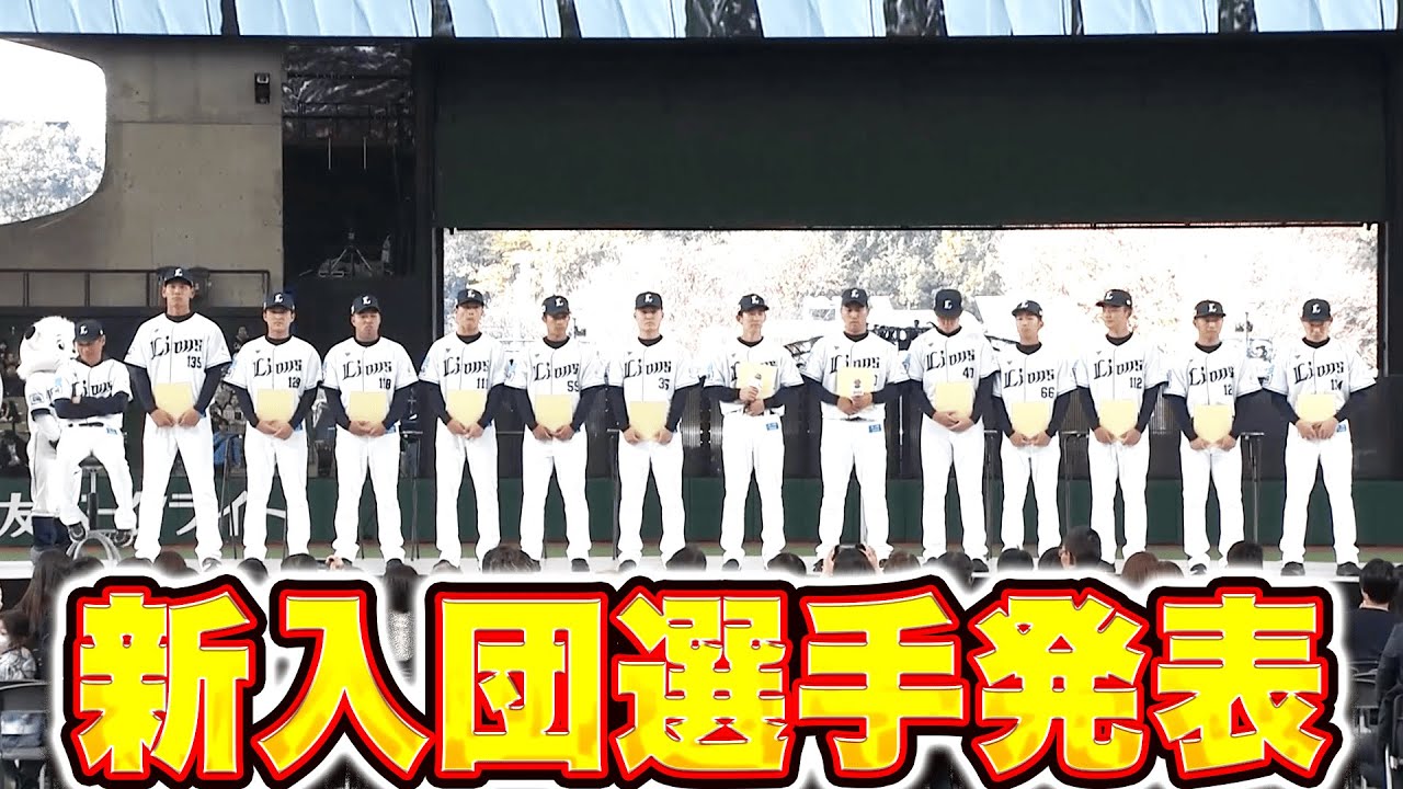 お待たせいたしました。ただいまより 2025ドラフト新入団選手発表会を行い ます。西口監督よろしくお願いいたします 。 それでは2025ドラフト新入団選手の 登場です。 ドラフト1背番号10小島タイガー保守 明治大学 2位背番号 岩投 中央大学 3位背番号35秋山外 中京大学 4位背番号40鳥越 投手東北福大学 ドラフト5位背番号59横田相和内足山村 学園高 ドラフト6位号66川田入試外四国進行 育成ドラフト1位背番号111新井 内足八王子学園八王子高お 育成ドラフト2背番号112今岡 上村学園高 育成ドラフト3位背番号118斎藤 投手徳島インディゴソ 日ドラフト4位背番号124浜岡蒼太投手 川高 育成ドラフト背番号128平口 投手日本大学 育成ドラフト6位134正優馬 当手大学 育成ドラフト7位背番号135安藤銀足 徳島インディゴソ 以上、2025ドラフト新入団選手13 名が揃いました。新入団選手の皆さんは前方へ出て中央に詰めてご成列ください。 今一度新油団選手に大きな拍手をお送り ください。 それではまず始めに西口監督よりご挨拶 いただきます。西口監督お願いいたします 。 はい。え、ファンの皆さんこんにちは。 え、今日ここに新たに13人の選手が、え 、ライオンズの一員として、え、加わる こととなりました。え、選手たちは、え、 自分の生入り、背番号入りのね、え、 ユニフォームを来て、えー、緊張してる ように思います。え、いずれこの選手たち が、え、埼玉西武ライアンズの力となり、 え、勝利を、え、もたらしてくれることと 思っています。選手の皆さん入団して いただきありがとうございます。共に 頑張っていきます。ありがとうございます 。 西口監督、ありがとうございました。それ では自席へお戻りください。 え、それではここからは新入団選手の皆 さんから自己紹介とプロ野球人生での目標 を指揮士にて発表していただきます。え、 まずは小島選手からお願いいたします。 どうぞ1歩前に出てお話しください。では よろしくお願いします。 明治大学から参りました。背番号 10 小島大ガです。え、自分の目標は週です。自分の持ち味であるバッティングを皆様に見ていただけたらと思います。よろしくお願いします。 ありがとうございました。では続いて岩木投手お願いいたします。 中央大から来ました岩です。 え、自分の目標は最強のエースになることです。え、負けないピッチャーっていうのは最強だと思うので自分もそういう風になりたいなって思って書きました。え、早くチームに貢献できるように頑張ります。よろしくお願いします。 ありがとうございました。え、では続いて秋山選手お願いいたします。 え、中京大学から参りました。背番号 35 番秋山です。え、自分の目標は終電車にしました。 え、駐車のタイトルを取って、え、回を代表するようなバッターになりたいと思います。よろしくお願いします。 ありがとうございました。続いて堀お願いいたします。 東北副士大学よりまいりました堀太です。え、自分の目標は日本一の当初になることです。え、今年の 6 月に日本一を経験させてもらって、またこの舞台で日本一になりたいなと思いこの目標にしました。 応援よろしくお願いします。 ありがとうございます。それでは続いて横田選手お願いいたします。え、山村県高校家から参りました横田ソです。え、自分の目標は年間 200 アンダです。え、この目標を達成するためにしっかりと 1 年間試合に出続け、え、目標を達成できるよう頑張りたいと思います。 え、またライオンズは昔から応援していた球団なので、一軍の舞台で活躍をし、優勝に貢献できるよう頑張ります。応援よろしくお願いします。 ありがとうございます。では続いて選手お願いします。四国銀行から参りましたです。僕の目標は盗塁王です。 え、客力に自信があるので道を絶対取り たいと思います。よろしくお願いします。 ありがとうございます。それでは続いて 新井選手お願いいたします。こんにちは。 八王子高号から参りました背番号111番 の荒新ゆです。自分の目標は西ブ ライオンズの金めの金めとなるような選手 になることです。よろしくお願いします。 ありがとうございます。 それでは続いて今岡選手お願いいたします。 上村学園高校から参りました今岡です。自分の目標はトプル 3です。総行 3 拍子育揃育揃った選手になれるように頑張ります。よろしくお願いします。 ありがとうございました。では続いて斎藤投手をお願いいたします。 こんにちは。徳島ソックスから参りました斎藤です。 え、僕の目標は負けない投になることです。なのでこの野球人生何事にも負けないように頑張ります。これから応援よろしくお願いします。 ありがとうございました。続いて浜岡手お願いいたします。こんにちは。神奈川県立川コート学校から参りました浜岡太です。自分の目標は日本一努力して日本一のピッチャーになって西ブライオンズを日本一にすることです。 よろしくお願いします。 ありがとう