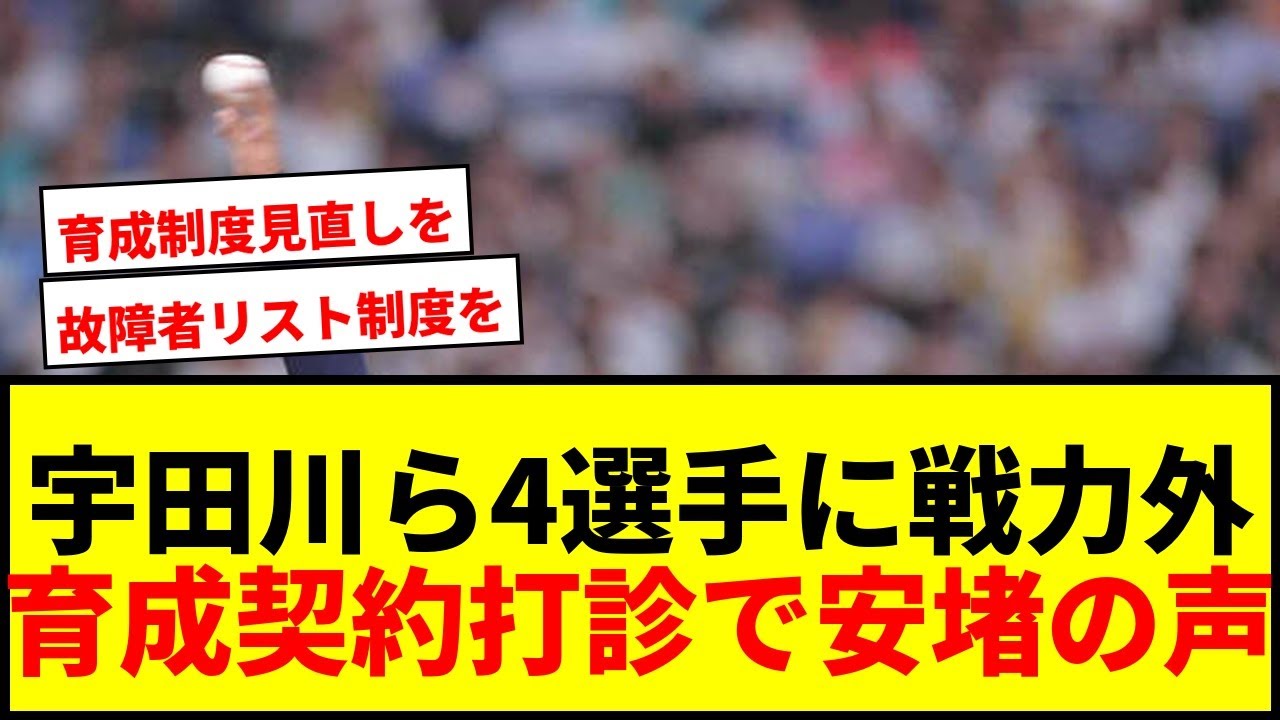 [音楽] 4選手に戦力内 育成契約しでアンドを超えは 29日浦川投手長期脱投手山投手大外登の 4 選手に来年度の支配契約を結ばないことを通告しました。しかし 4 選手ともに育成契約が打進される見込みでカラはドの声が上がっています。裏川都市は右肘の富ジョン手術大阪ボル生選手は右肩反節の手術を受けておりハビリカーの復帰を目指します。 [音楽] この 育成契約への移行は長期的なリハビりを要する選手の球団の範囲が見られています。支配下ではなく育成契約に切り替えるのは戦力とは違うだろう。そろそろ育成制度の見直しを考えた方がいいと思う。 [音楽] こういう年単位でリハビリが必要な選手のために故障者リスト制度にしてほしい。 全員リハビリからの復帰を目指しての育成契約になるって話か。それなら納得。川の戦力外通国の乱しだったが出明けで育成契約以降で安心した。 [音楽] 球団が川投手うちとハ契約締結しませんか?りなのかな? 無駄とか3年前の日本シリーズ無双して WBC代表だったのにかわいそう。 支配核は外れても育成しなら戦力なって言葉を使う必要ある。同じく手術で吉田橋も育成かと思ったが回復が順調ということでしょうね。大阪はそんな身体良くないのか想定だったな。 [音楽] た、小田島吉田若い幕間に合う目度が立ってるのかな? 過去に一軍で活躍していた選手が育成契約とは戦力外と育成の言葉の [音楽] H [音楽]