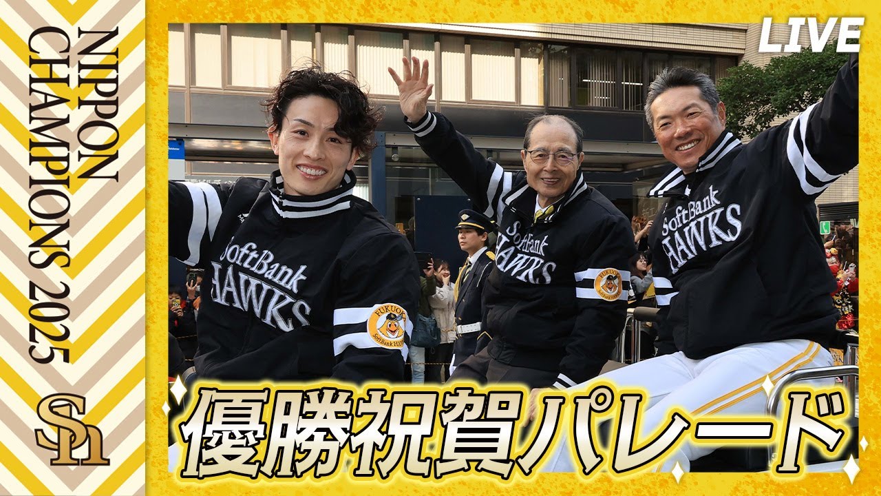 【生配信】福岡ソフトバンクホークス優勝祝賀パレード 2025年11月24日(月・休)に開催される福岡ソフトバンクホークス優勝祝賀パレードの様子を球団公式YouTube・ホークスTVで生配信・見逃し配信します! #福岡ソフトバンクホークス #sbhawks Fukuoka SoftBank HawksFukuoka SoftBank Hawks Official ChannelFukuoka SoftBank Hawks Official VideoOfficial ChannelOfficial VideoPACIFIC LEAGUE福岡ソフトバンクホークス NPBHUB.COM | The Fanbase of Nippon Baseball & Nippon Professional Baseball