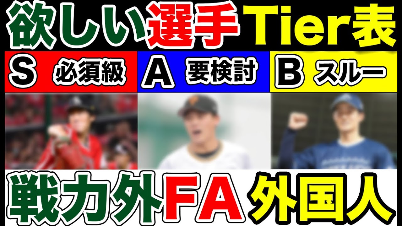 【ストーブリーグ】FA戦士・他球団戦力外・去就フリーの外国人など注目選手159名の格付け&ランキングを作成!今オフ必要な選手を考えてみた【Tier表】【オリックスバファローズ】
