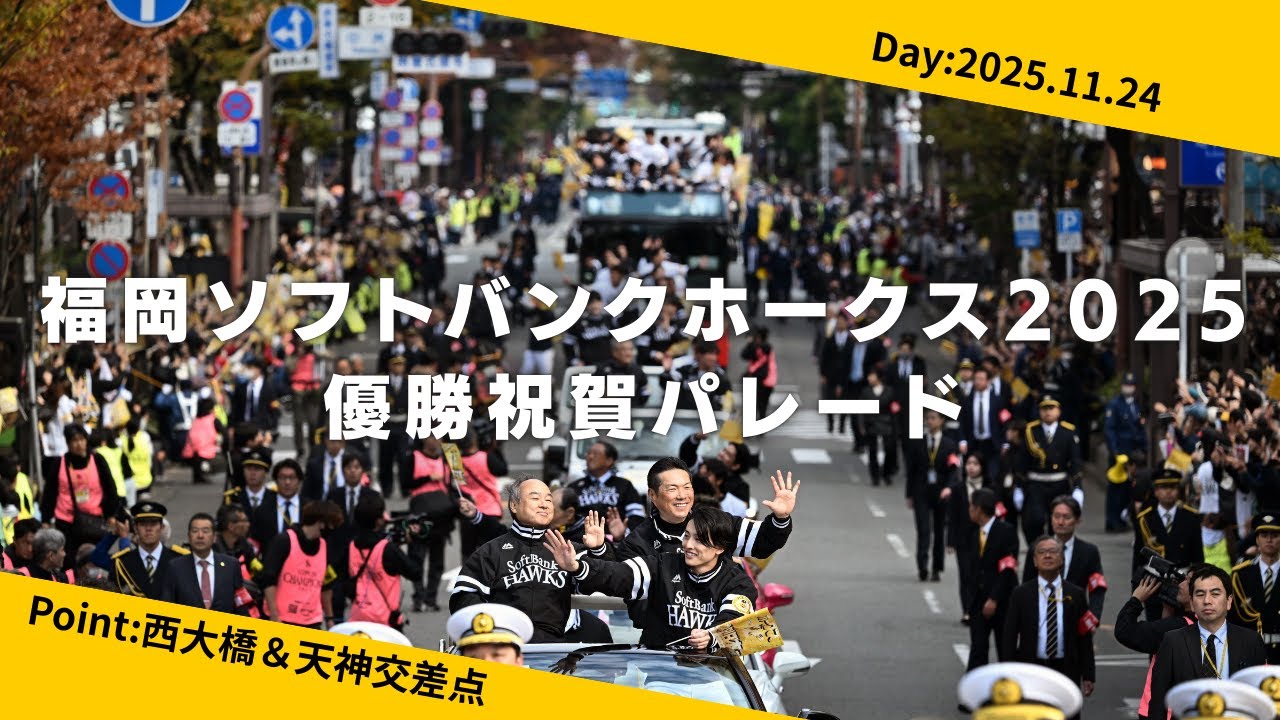 福岡ソフトバンクホークス2025優勝祝賀パレード 孫オーナーも駆けつけ、沿道はファン大勢詰めかける