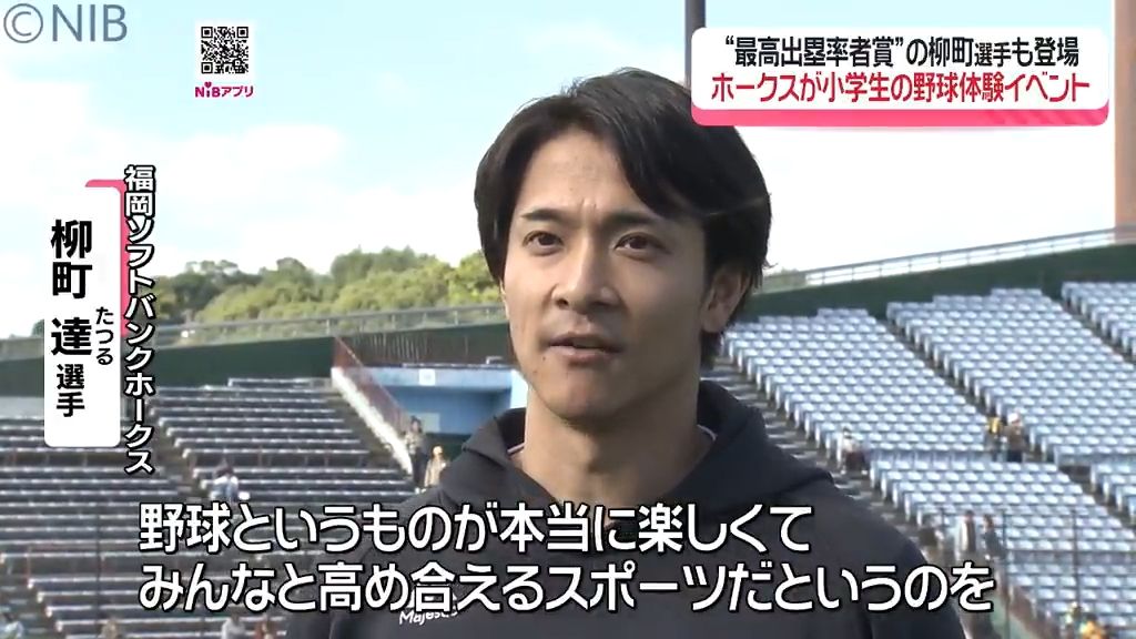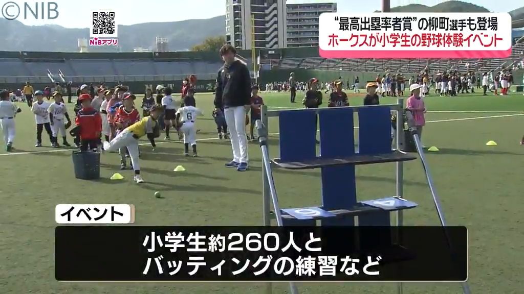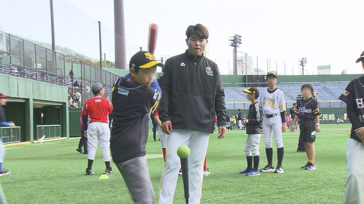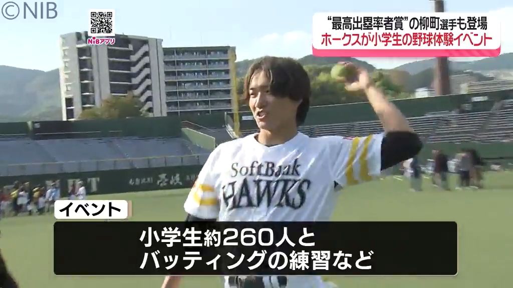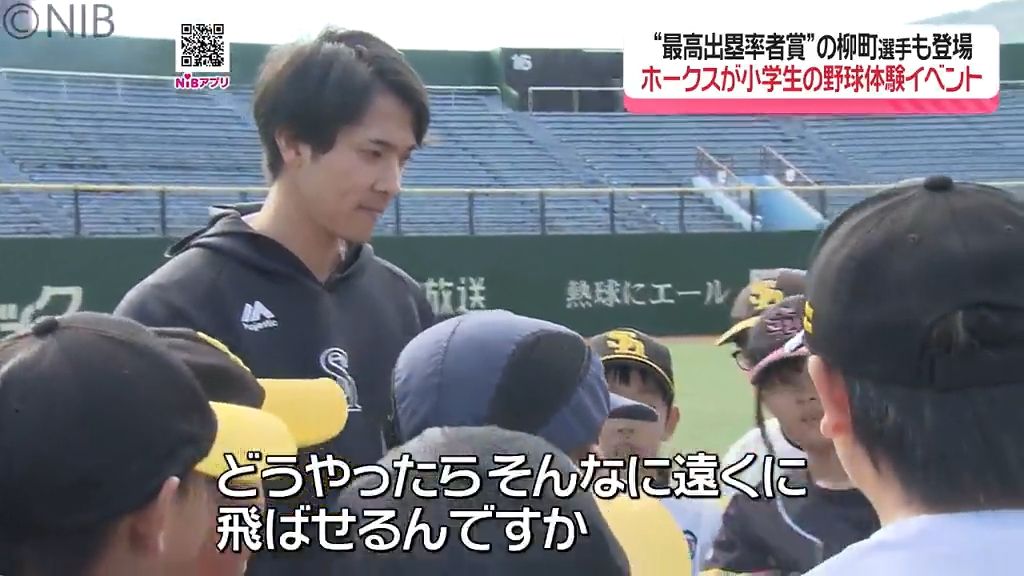 日本一に輝いたプロ野球「福岡ソフトバンクホークス」による小学生向け野球体験が行われ、あの選手が登場しました。
