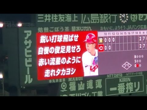 鋭い打球 飛ばせ 自慢の俊足 魅せろ 赤い流星の ように 走れ タカヨシ 【かっ飛ばせー (野間)峻祥!】