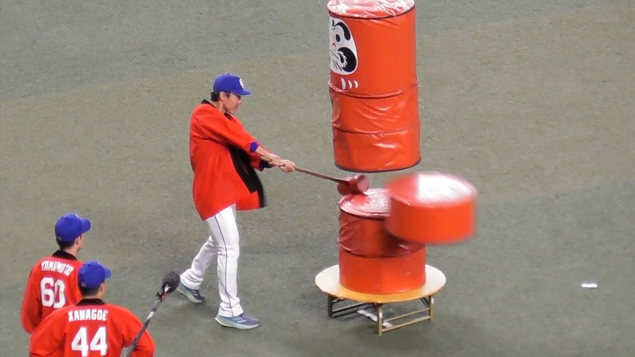 だるま落としもさすがプロ大島洋平 顔がだるまに似ている川越誠司 慶應魂ニコニコの山本泰寛 巨大だるま落とし対決 野手チーム 中日ドラゴンズファンフェスタ 2025/11/22