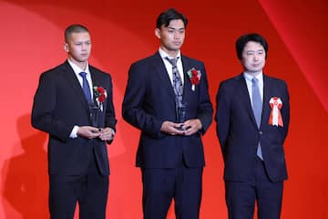 今季のプロ野球のタイトル獲得者らを表彰する「NPB AWARDS 2025 supported by リポビタンD」が26日、東京都内で開かれ、サンケイスポーツ選定のファーム優秀投手賞には、イースタン・リーグがオイシックス・能登嵩都投手(24)、ウエスタン・リーグはオリックス・佐藤一磨投手(24)が受賞。サンケイスポーツの志田健メディア局局次長から記念品が贈られた。