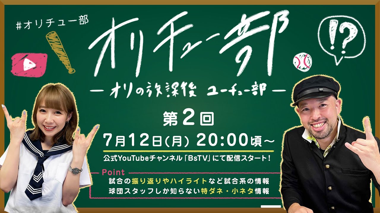 放課後の教室に仲間が集まっておしゃべりするように、ファンと一緒にわいわい楽しくおしゃべりしたい!オリックスファンみんなで盛り上げていくYouTube番組「オリの放課後 ユーチュー部」の第2回配信!▼番組についての詳細はこちら▼