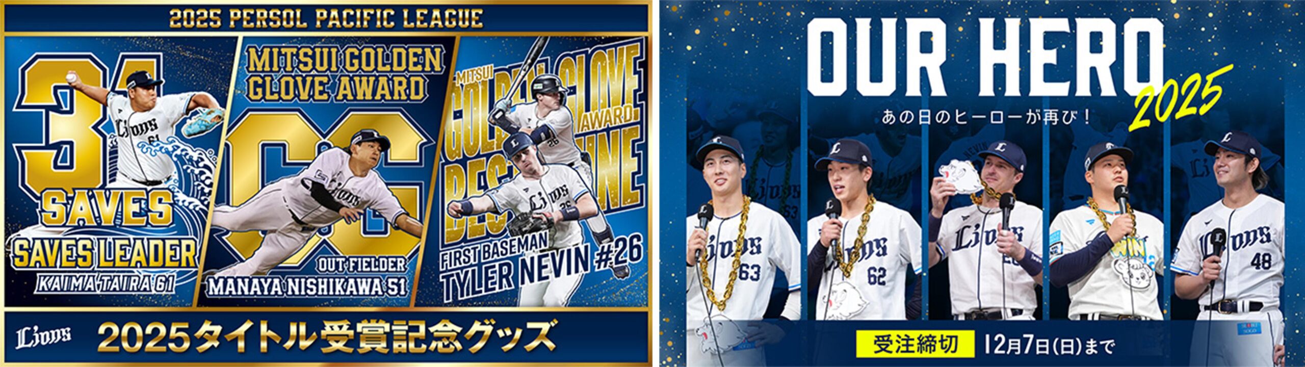 本日11月26日(水)より『平良海馬投手最多セーブ投手賞』『タイラー・ネビン選手第54回三井ゴールデン・グラブ賞&ベストナイン賞』『西川愛也選手第54回三井ゴールデン・グラブ賞』のタイトル獲得記念グッズの受注販売がスタート!